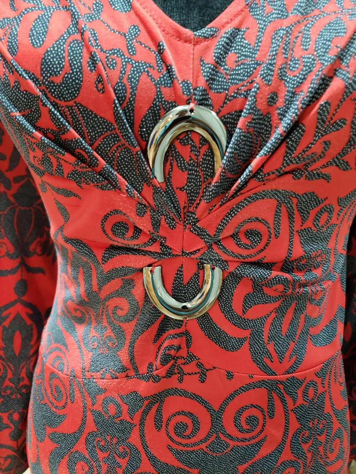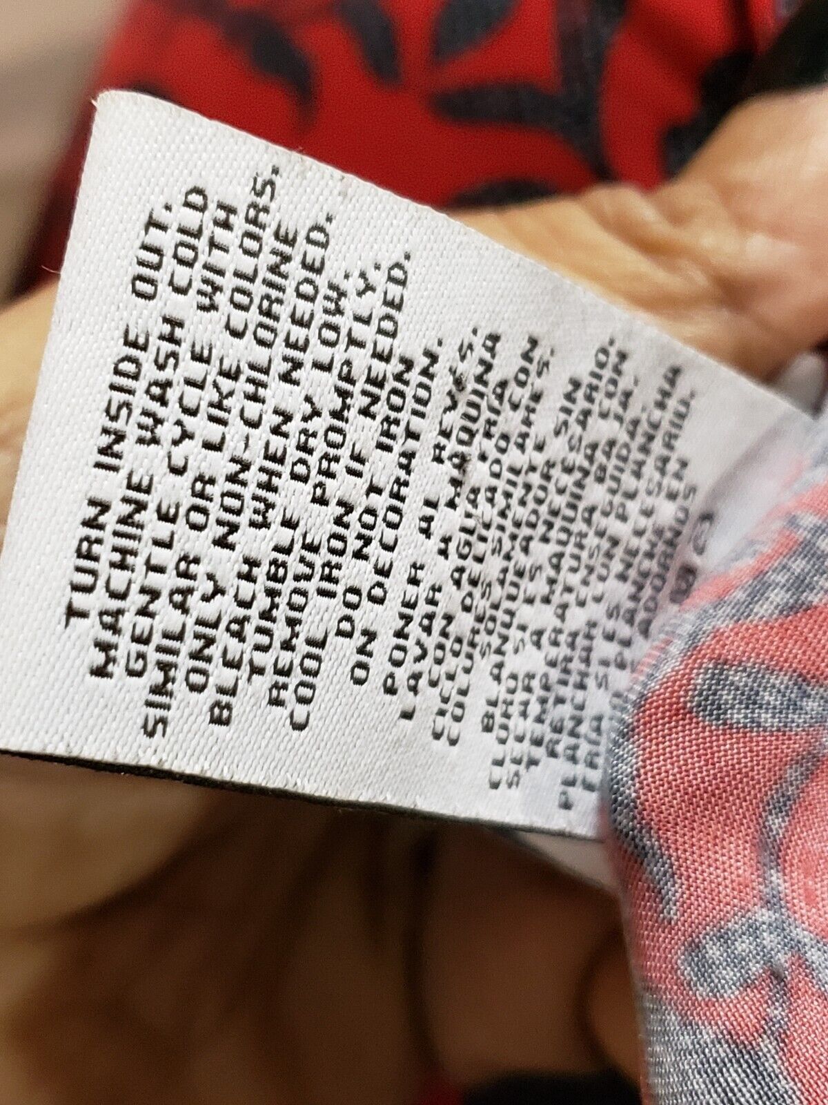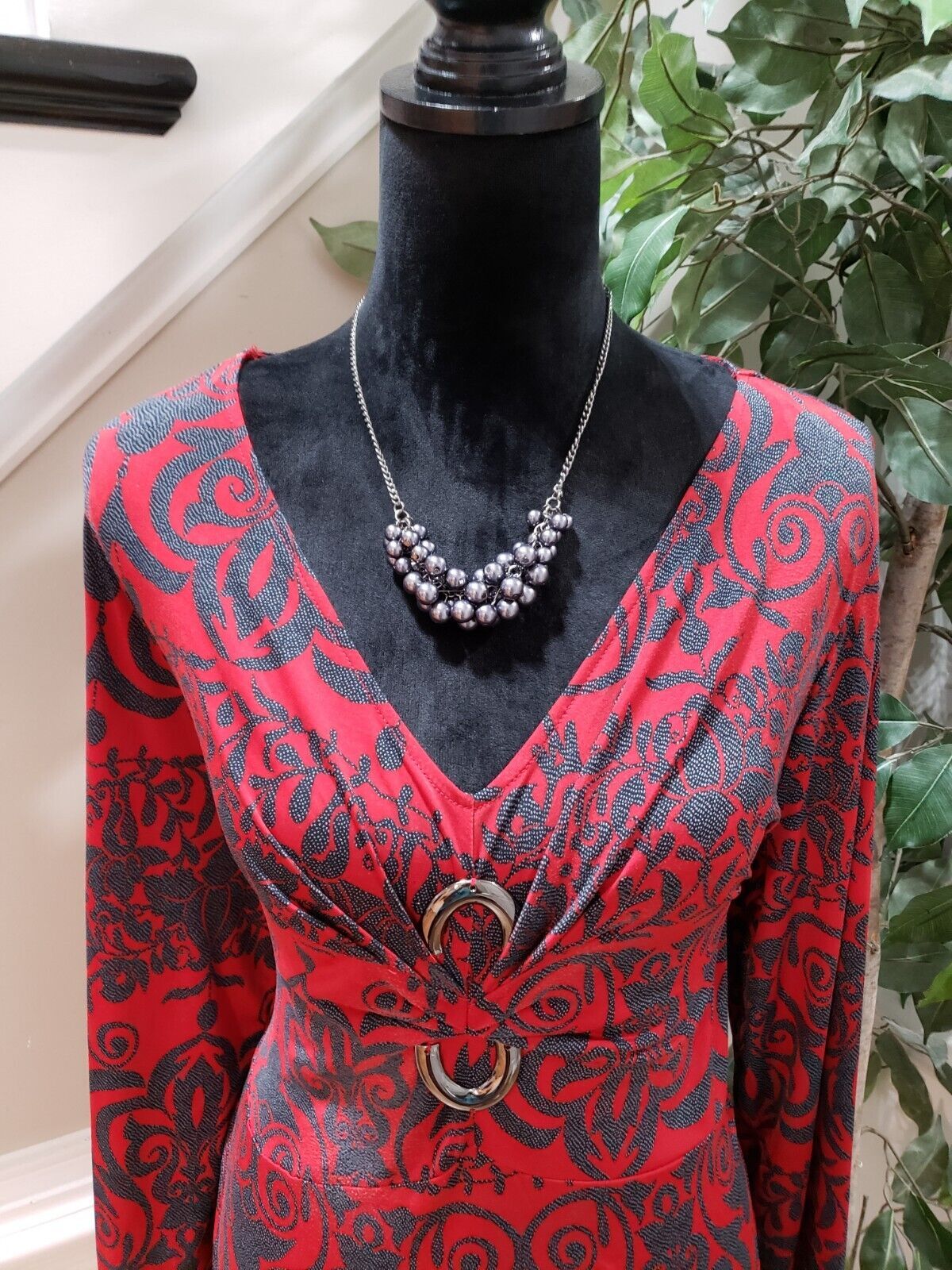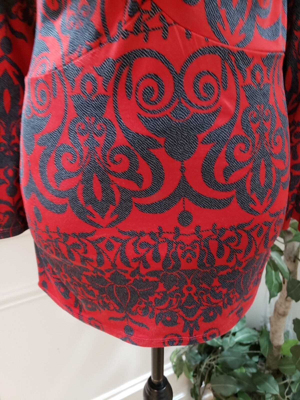 Jaclyn Smith Women's Red Floral Knot Hem V Neck Long Sleeve Top Blouse Large