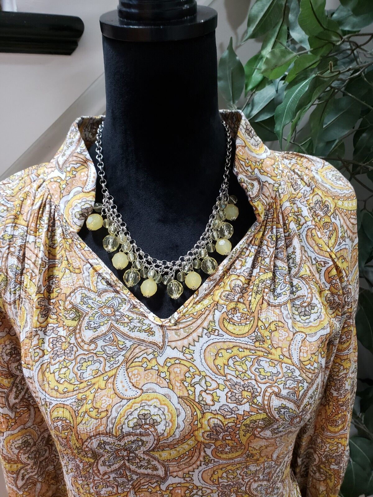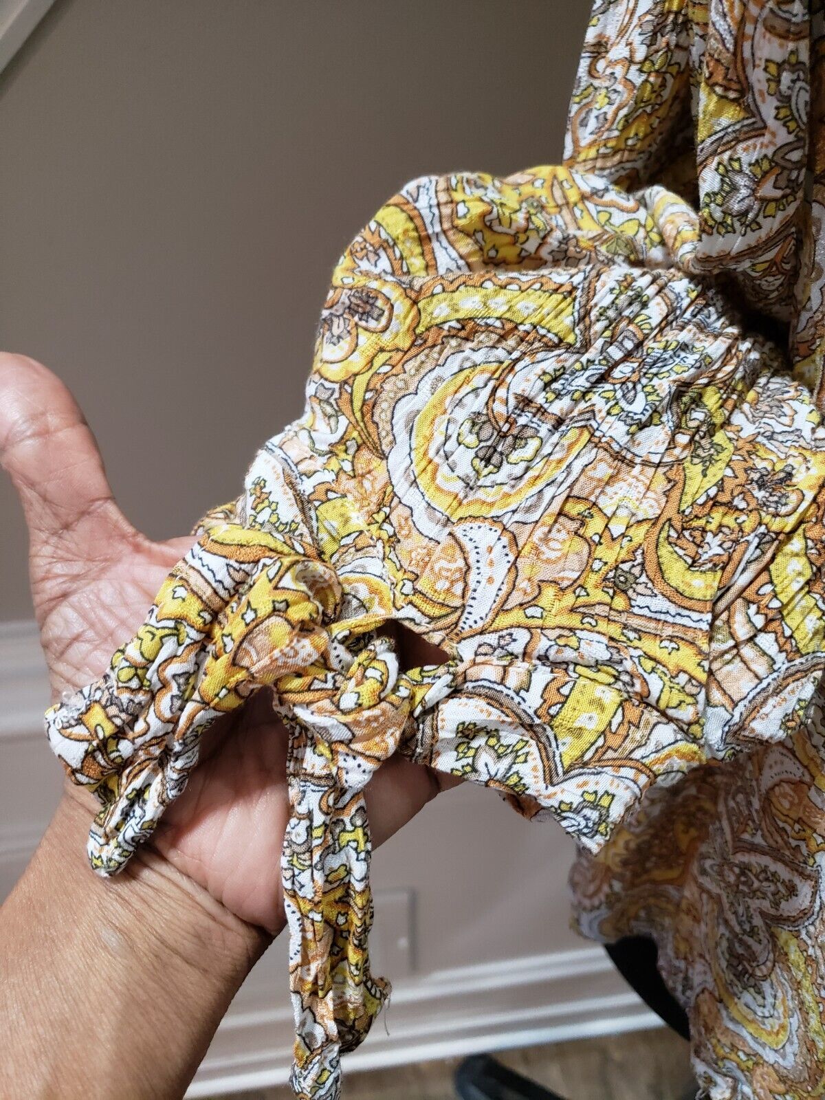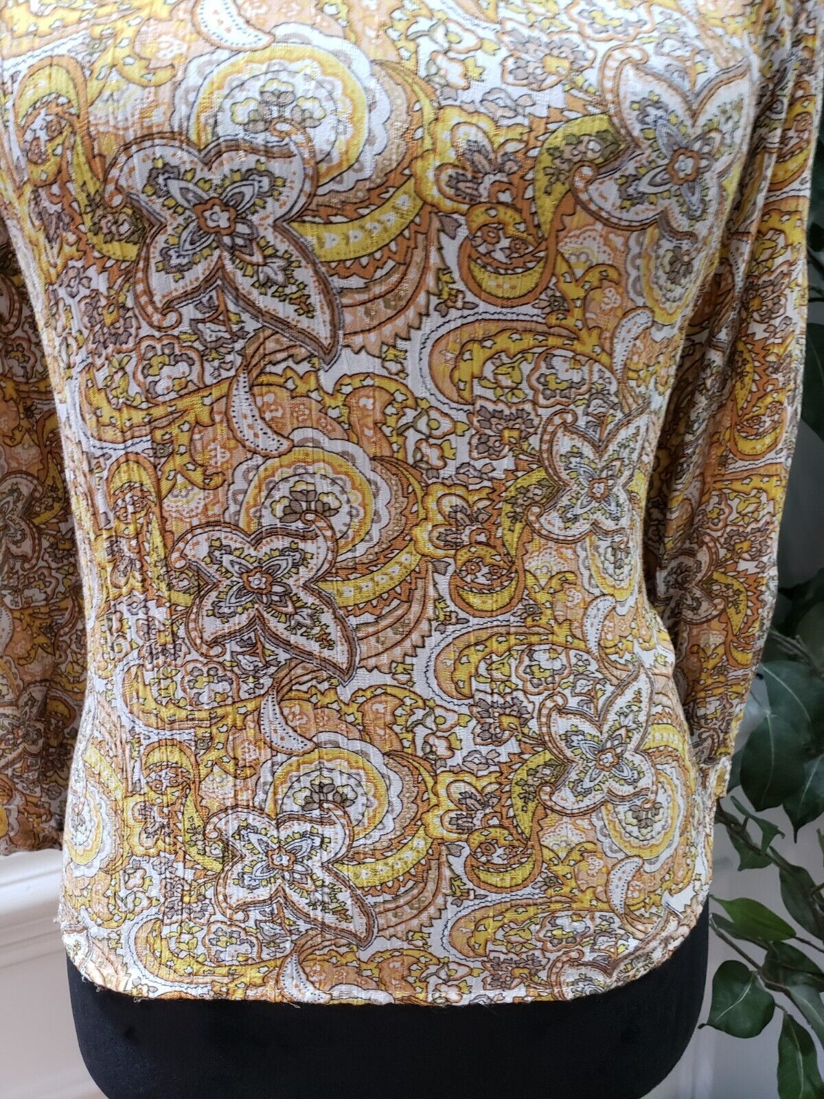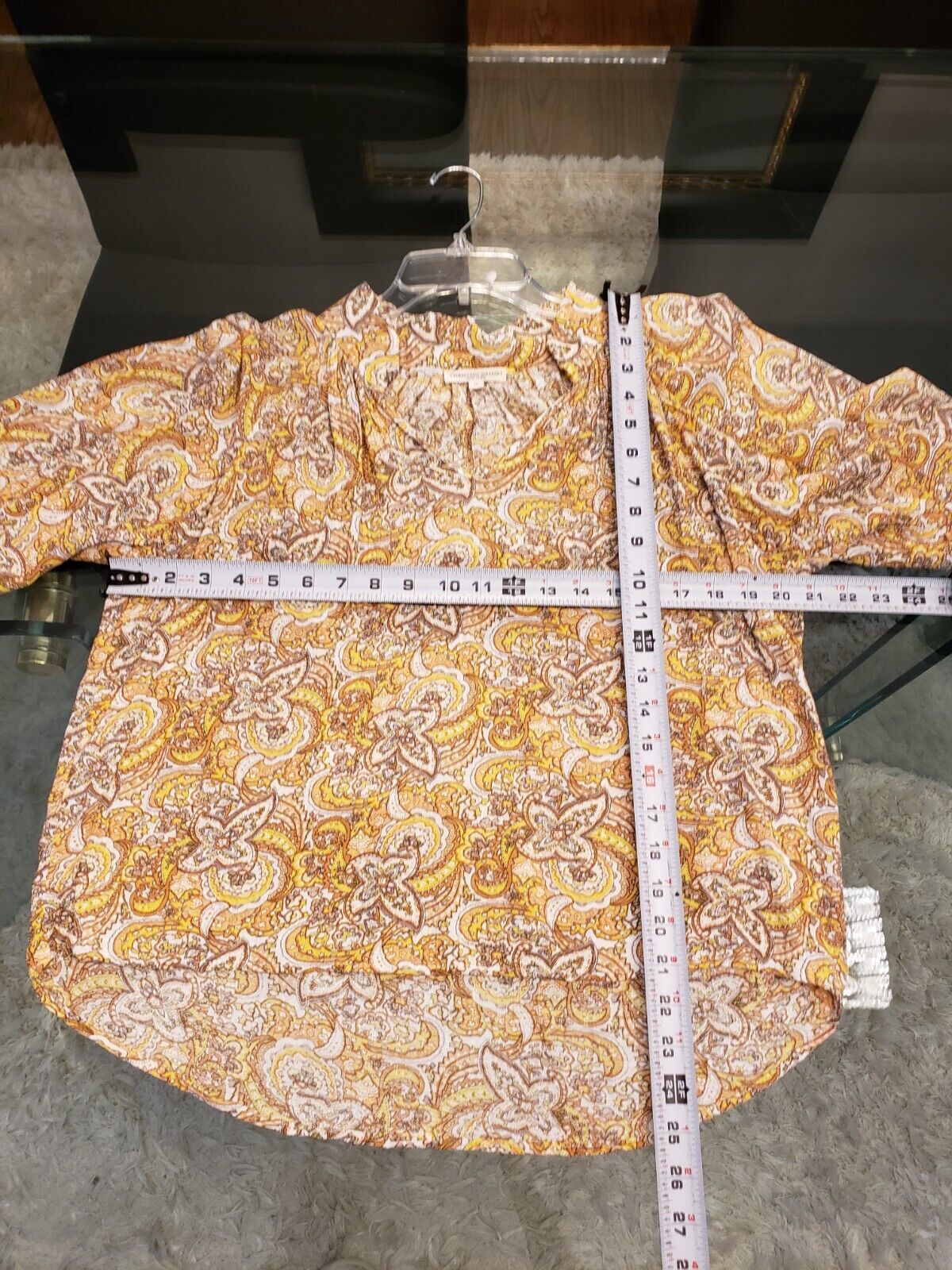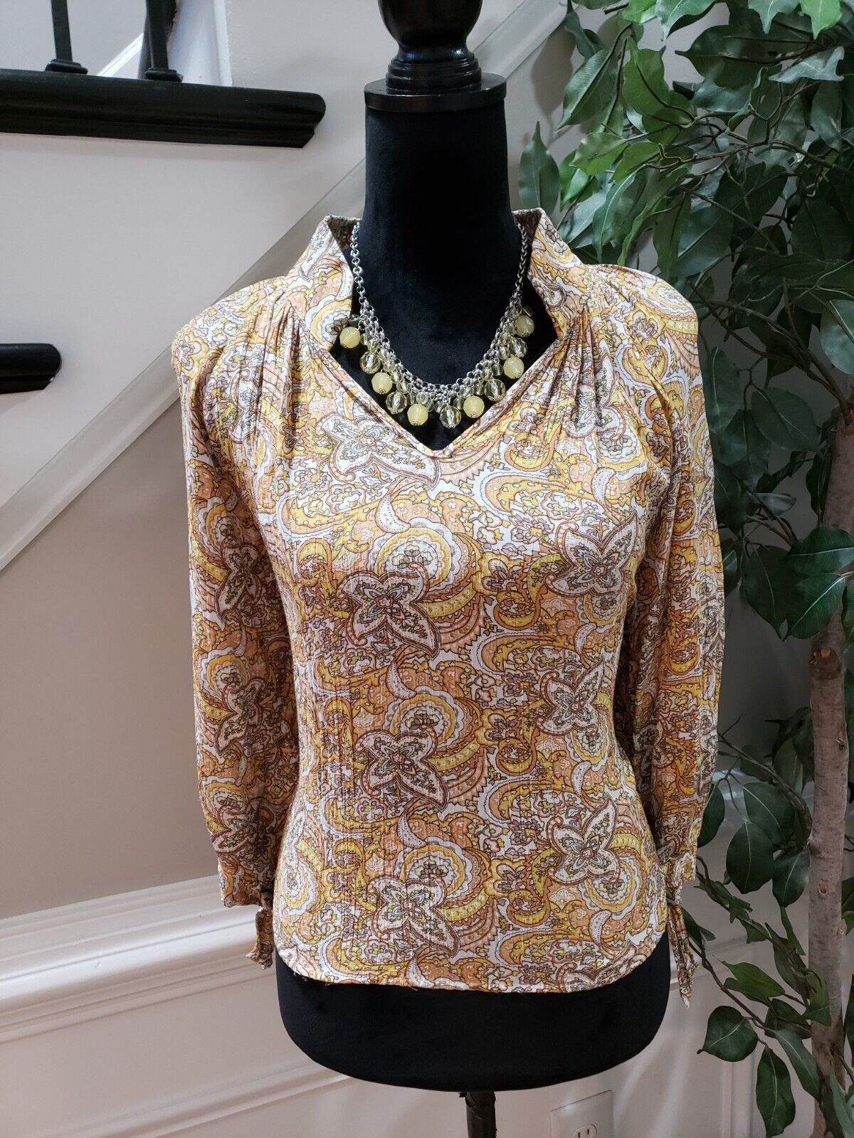 Christian Siriano Women's Multi Paisley Pleated V Neck Long Sleeve Top Blouse M
