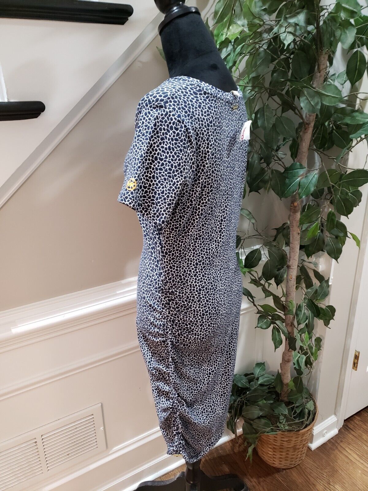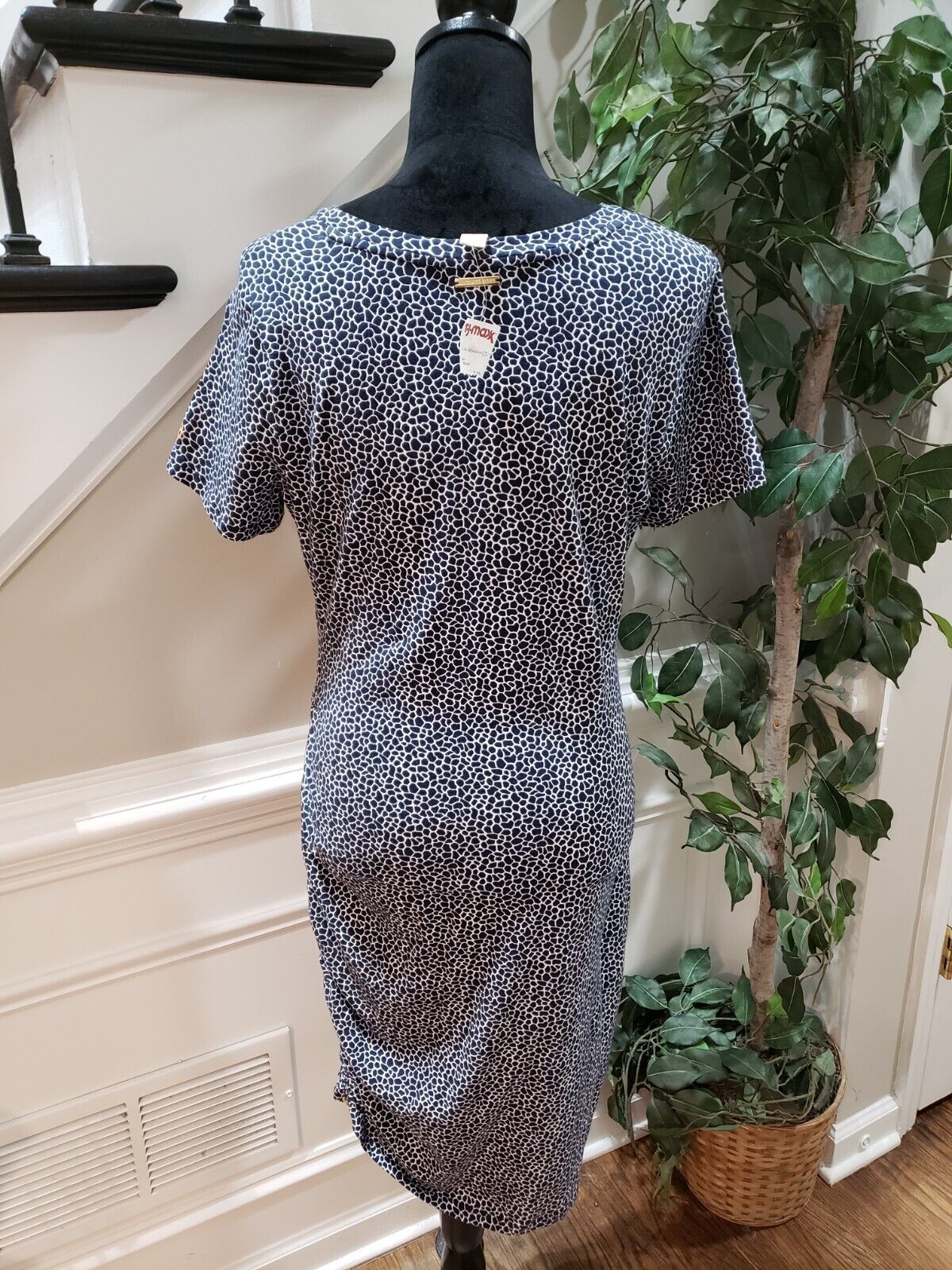 Michael Kors Women Blue Short Sleeve Round Neck Side Ruched Bodycon Dress Size M.