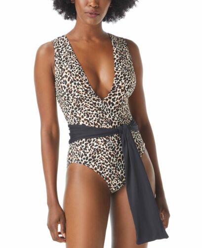 A deep dive into animal-print allure, Vince Camuto's fierce one-piece is finished with a flowy sash.