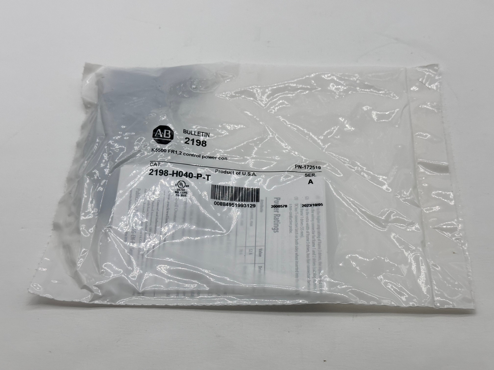 Allen-Bradley 2198-H040-P-T SER.A 2 Control Power Connector