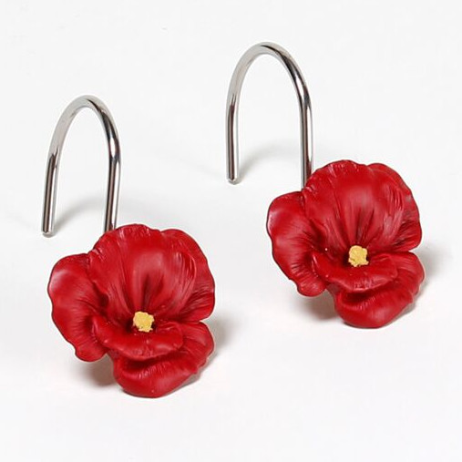 * Set of 12 Poppy Field shower curtain hooks. Each hook measures approx. 7.01"x3.78"x2.76". Resin and metal. Imported.