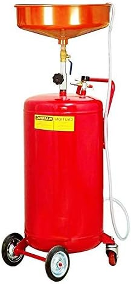 20 Gallon Portable Waste Oil Drain Tank Air Operated Drainage Adjustable Funnel Height with Wheel, Red
