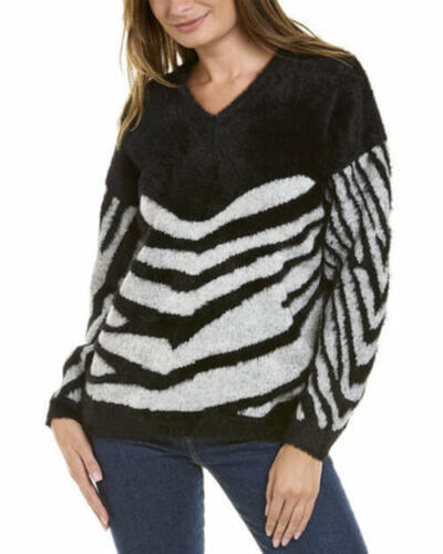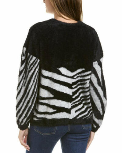 MSRP $99 Vince Camuto Zebra-Print Eyelash Sweater Antique Black Size Small