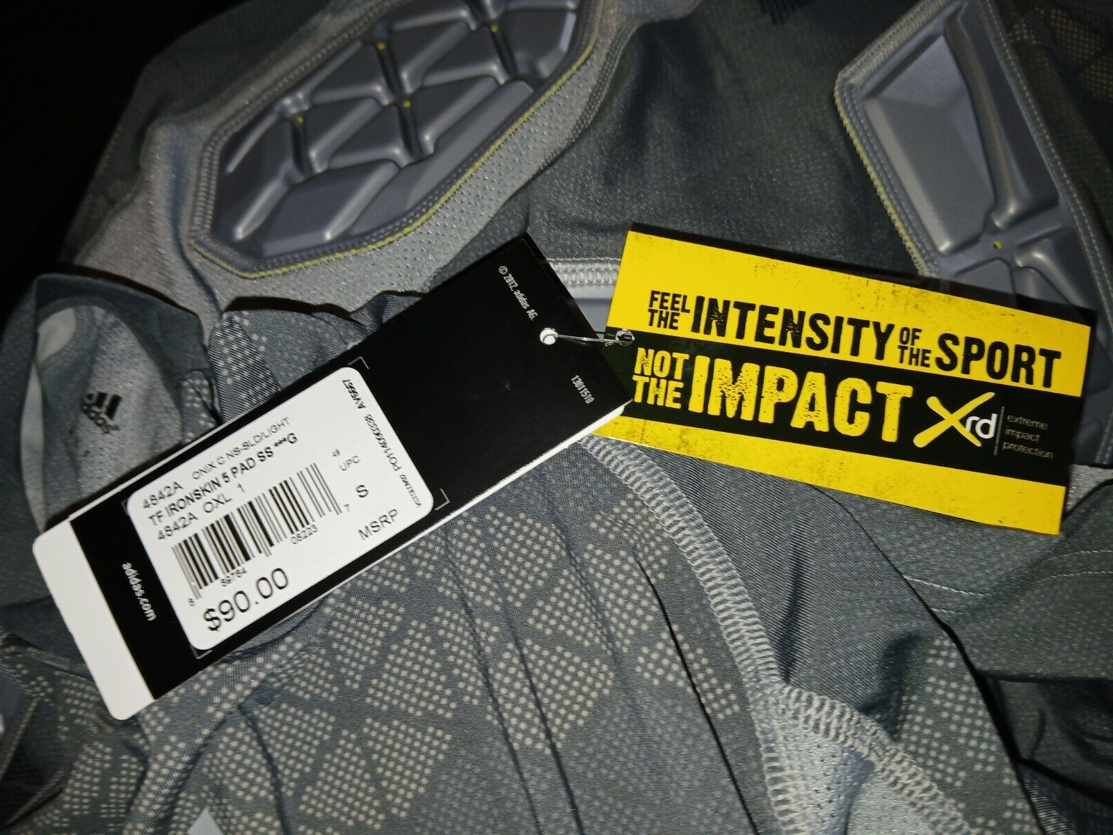 THIS IS A GREAT MEN'S ADIDAS TECHFIT CLIMACOOL TF IRONSKIN 5-PAD GRAY STRETCH JERSEY IN A SIZE SMALL. IT IS NEW, WITH TAGS AND PRICE TAG OF $90.