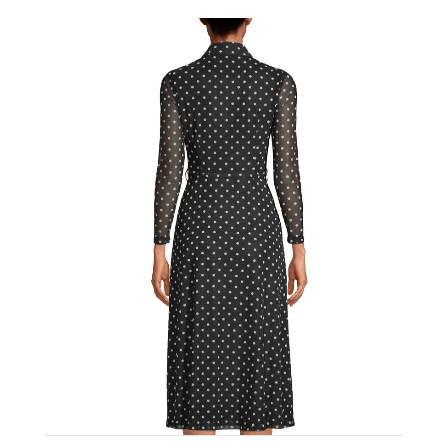 Anne Klein Womens Long Sleeve Printed Mesh Button Dress. Flaunting a tie waist, this dress by Anne Klein boasts an all-over dot pattern and mesh sleeves. Front button closure Peter Pan collar Long sleeves Removable sash Lined, except sleeves 92% polyester, 8% elastane Dry clean Imported