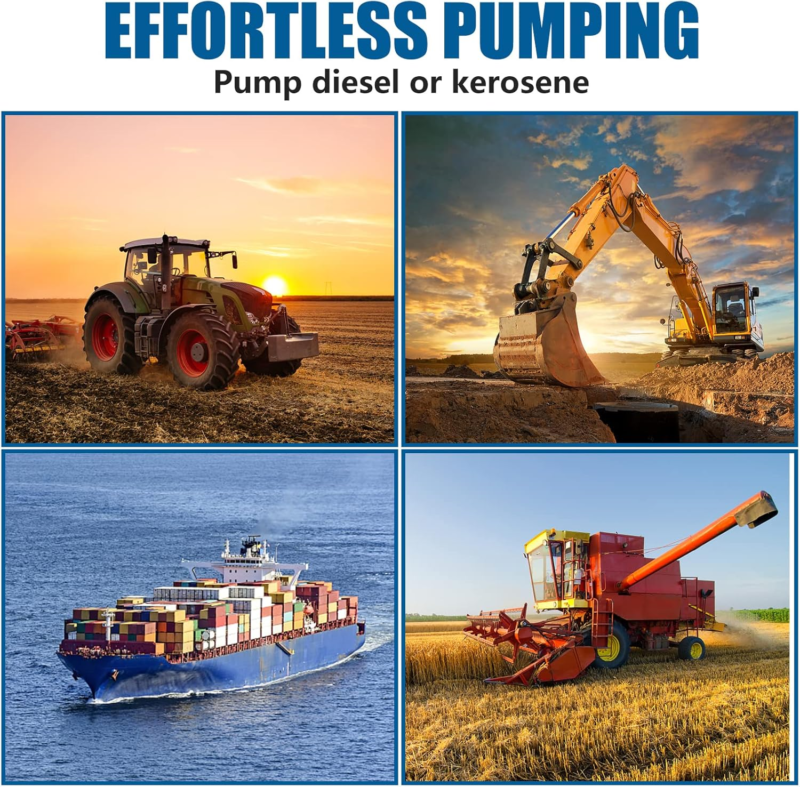 ?Versatile Use?This 110 V diesel transfer pump is the perfect companion for various machinery, tractors, and farm equipment.It excels in transporting diesel, kerosene, machine oil, and transformer oil, making it highly versatile for use in farms, construction sites, industries, and car repair shops. However, it?s important to note that this pump is not suitable for low-ignition fuels like gasoline, liquefied petroleum gas, or alcohol transmission.