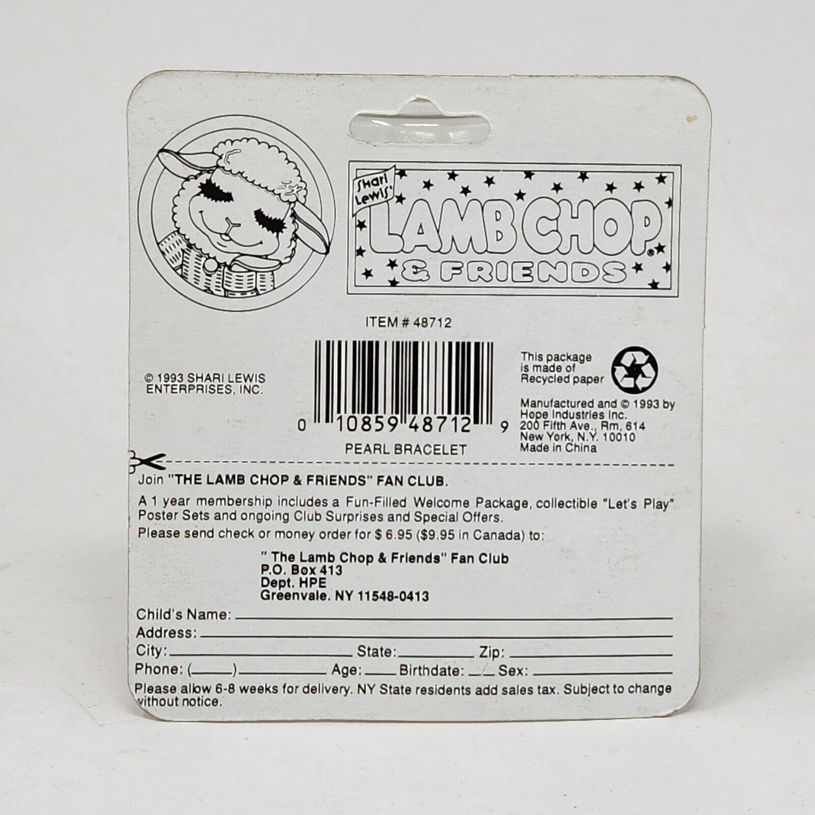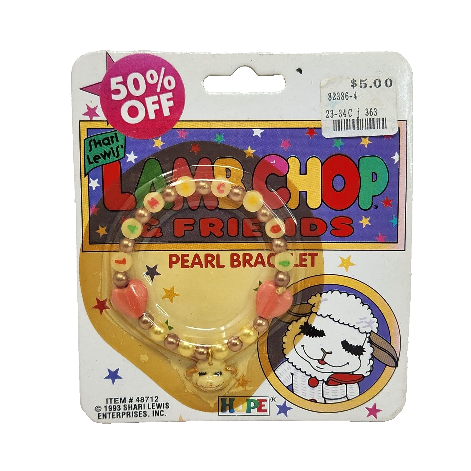 VINTAGE 1993 SHARI LEWIS LAMB CHOP PEARL BEADED BRACELET W/ CHARM NEW SEALED