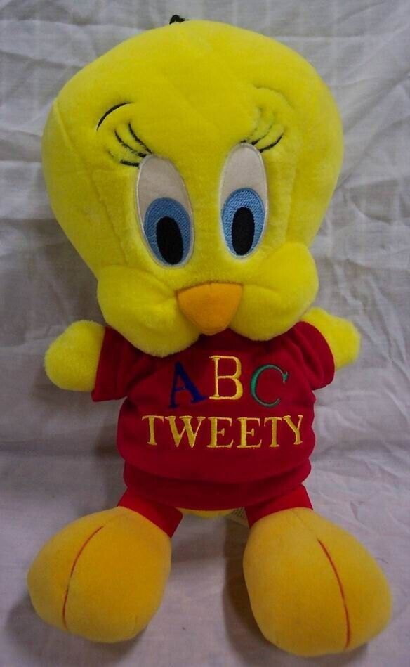 Combine auctions to save on sThis is a Vintage WB Looney Tunes TALKING ABC TWEETY BIRD Plush Stuffed Animal Toy. Made by WB Studio Store in 1998. It is 14 1/2 inches tall. It is in Great Condition. It is CLEAN! No Stains, Tears, or Defects. Press the tummy and he says, "My name is Tweety, let's sing together." Then he sings the ABC song. Please contact me if you need to make other payment arrangements. EAG