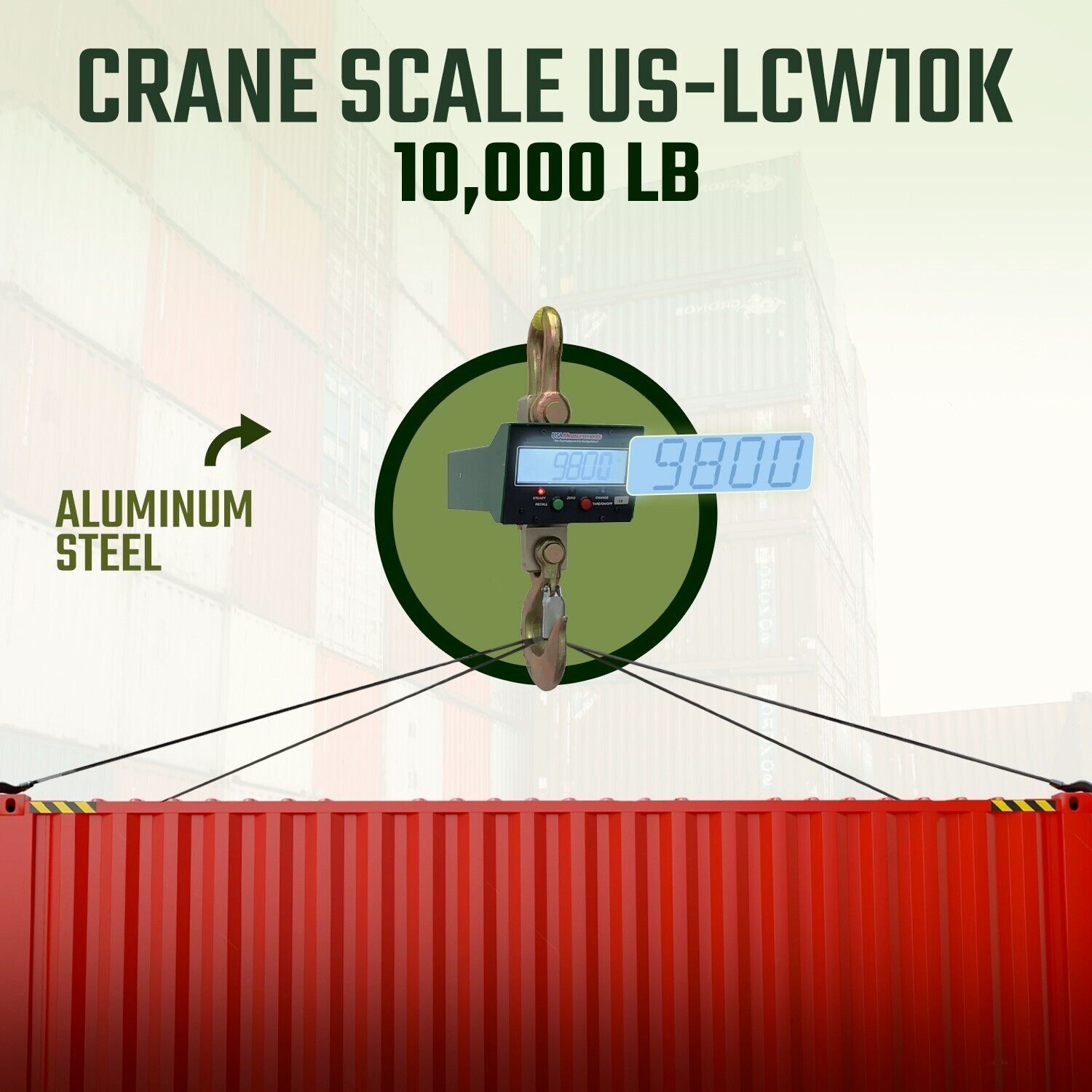 Crane Scale Best Heavy-Lifting Option The US-LCW10K Crane Scale is the ultimate heavy-lifting option! With its robust 10,000 kg capacity and precise 2 lb accuracy, this hanging crane scale ensures consistent, reliable measurements. Whether you need readings in pounds or kilograms, this digital crane scale delivers with ease. Its durable construction and user-friendly design make it perfect for both personal and commercial use, ensuring long-lasting performance and simplicity of operation. Heavy-Duty Capacity Crane Scale Crafted with high-quality materials and precise calibration, the professional crane scale ensures consistent, accurate results. Its handheld display and straightforward unit switching simplify operation, making it user-friendly. This heavy-duty hanging scale is ideal for a wide range of applications, from industrial use to personal projects, offering versatility in your toolkit. With a high capacity of up to 10,000 lb, it is perfect for heavy-duty tasks. Specifications: middot; Capacity: 10,000 lb middot; Accuracy: 2 lb middot; Calibrated in Pounds middot; Tare rage: full cap. middot; Load Cell Material: alloy steel middot; Calibrated for accuracy middot; AC/DC adapter (included) middot; Built-in rechargeable battery middot; 2 Year Warranty on Frame middot; 2 Year Warranty on Electronics middot; Non-NTEP (Not legal for trade) middot; US-LCW10K Brochure What rsquo;s Included: middot; 1 Top Shackle middot; 1 Bottom Clevis Hook middot; 1 Tension Load cell middot; 1 Built-in Rechargeable Battery middot; 1 LCD Bright Digital Display middot; 1 Wireless US-WFX Remote middot; 1 Wireless Small Remote middot; 1 AC Adapter middot; 1 Manual Care Instructions: Wipe the scale with a dry cloth. Avoid exposing the scale to extreme temperatures, moisture, or direct sunlight. Recharge the built-in battery regularly to ensure optimal performance. Use the provided AC/DC adapter for charging. HEAVY DUTY CRANE SCALE: Our Crane Scale is designed for heavy-duty tasks, with a robust capacity of up to 10,000 lb and precise 2 lb accuracy. Whether you're using it for personal or commercial purposes, this industrial crane scale ensures consistent, dependable measurements in both pounds and kilograms. HIGH-QUALITY MATERIALS: Built with high-quality materials, including a strong alloy steel load cell, this hanging scale is designed to withstand rigorous use and provide long-lasting performance. Its portable scale precise calibration ensures consistent, accurate results every time, making it a reliable tool for your heavy-lifting needs. VERSATILE amp; USER-FRIENDLY DESIGN: This hanging digital scale is ideal for a wide range of applications, from industrial use to personal projects. The scale hanging US-WFX Handheld Display provides a clear, easy-to-read interface, and the simple unit switching between LB and KG makes the operation straightforward and user-friendly. CONVENIENT POWER OPTIONS amp; TARE FUNCTION: The digital hanging scale comes with an AC/DC adapter and a built-in rechargeable battery, ensuring you always have power when needed. The hanging weight scale full capacity tare function allows you to reset the scale to zero even when measuring bulky items, enhancing its usability and convenience. RELIABLE amp; WARRANTY: Backed by a 2-year warranty on both the frame and electronics, the hook scale gives you peace of mind and confidence in your purchase. Its hanging scales digital weight precise calibration and reliable construction ensure consistent, accurate results for years to come.