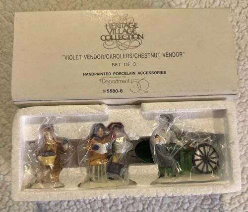 Dept 56 Heritage Village VIOLET VENDOR/CAROLERS/CHESTNUT VENDOR #5580-8 3 Pc