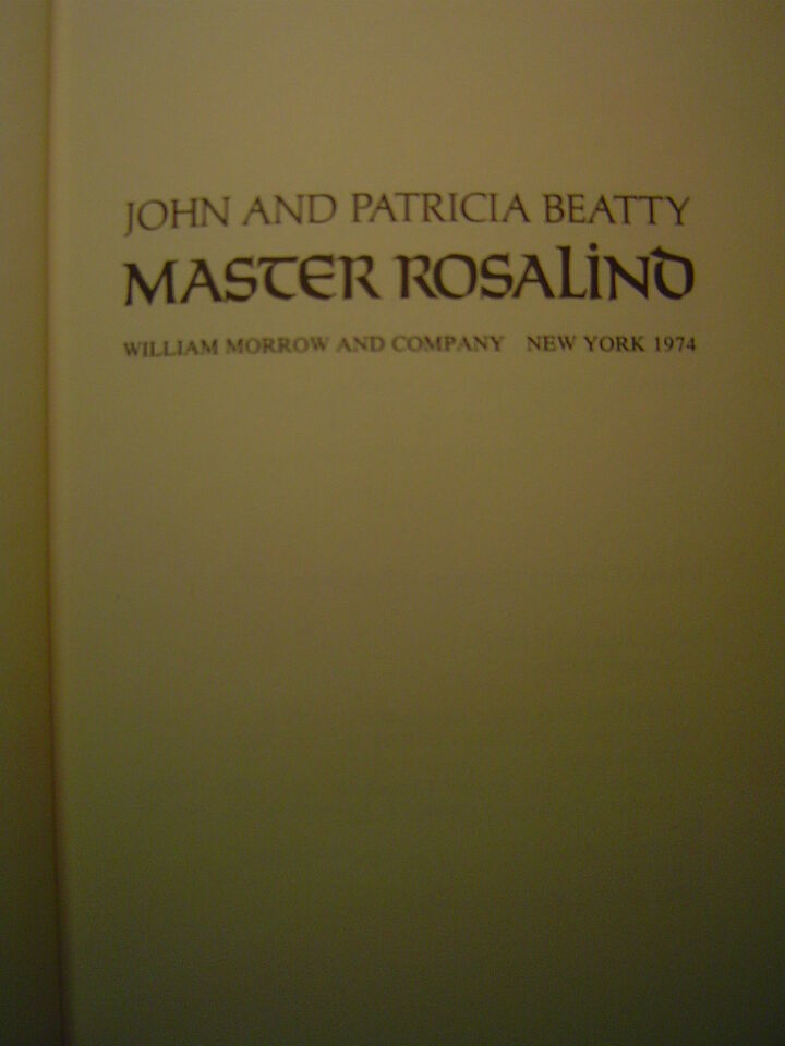 John & Patricia Beatty MASTER ROSALIND First edition, 1974 Juvenile Historical