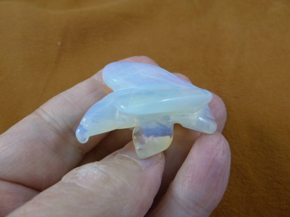 (internal #Y-BIR-EA-ST-562) Great figurine of an EAGLE with wings up, measures 1-7/8" long. Superb quality of polished WHITE OPALITE GLASS (looks lit from within, has gemstone status though it's man-made), this high quality gem has been hand-crafted in China. New, no defect.