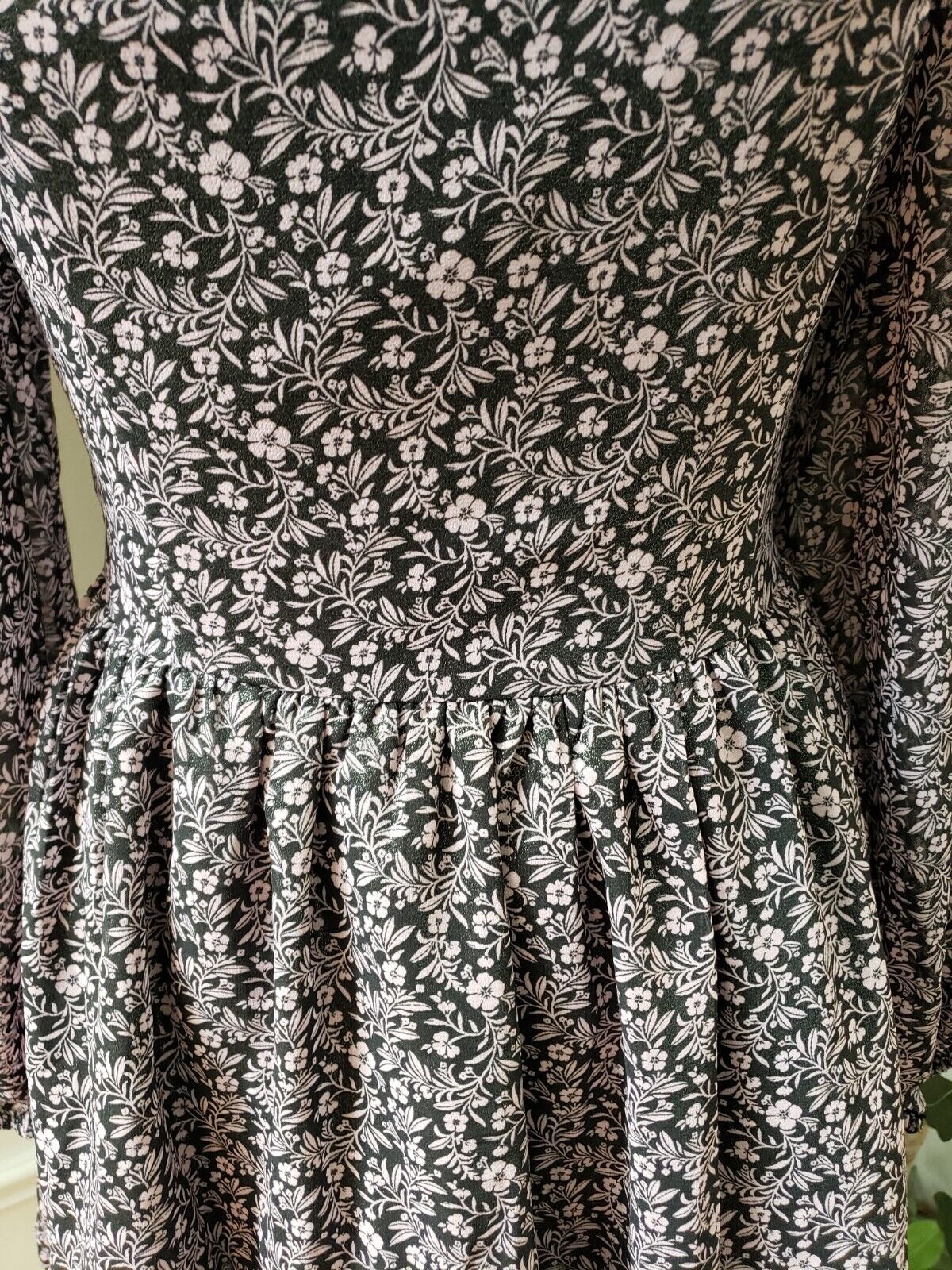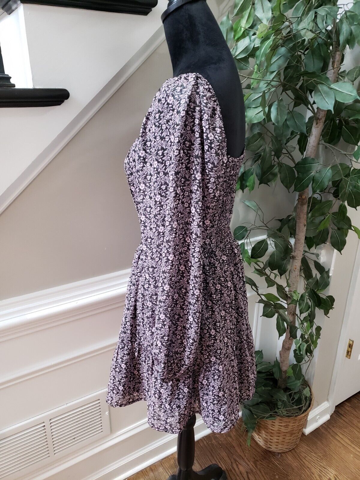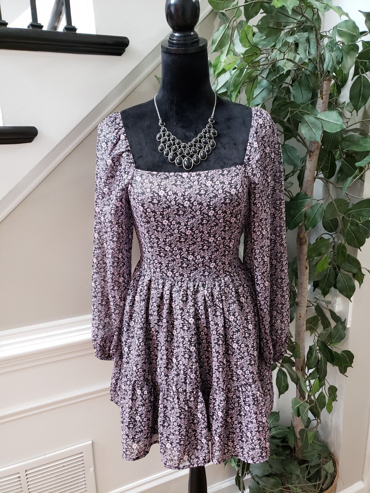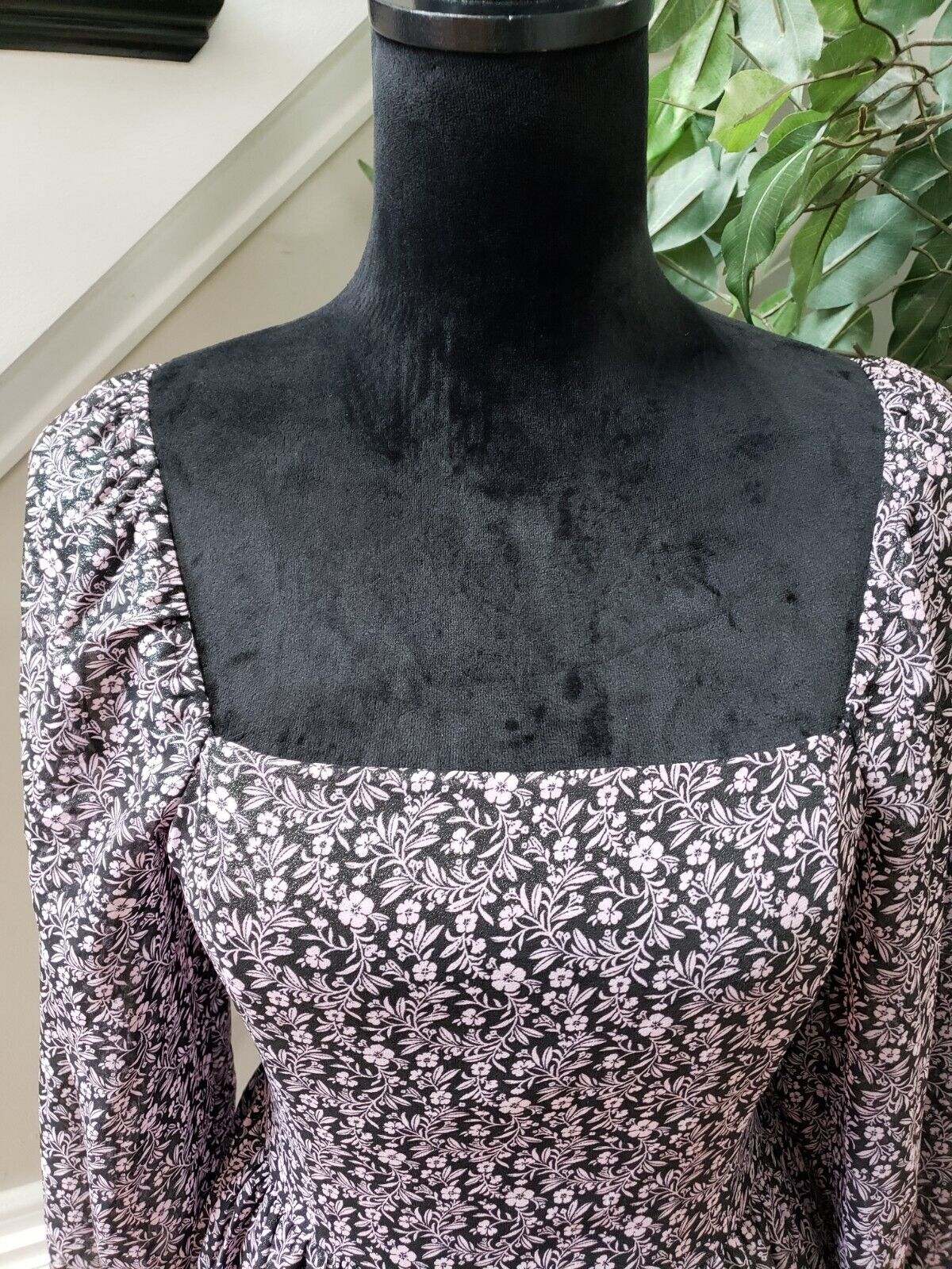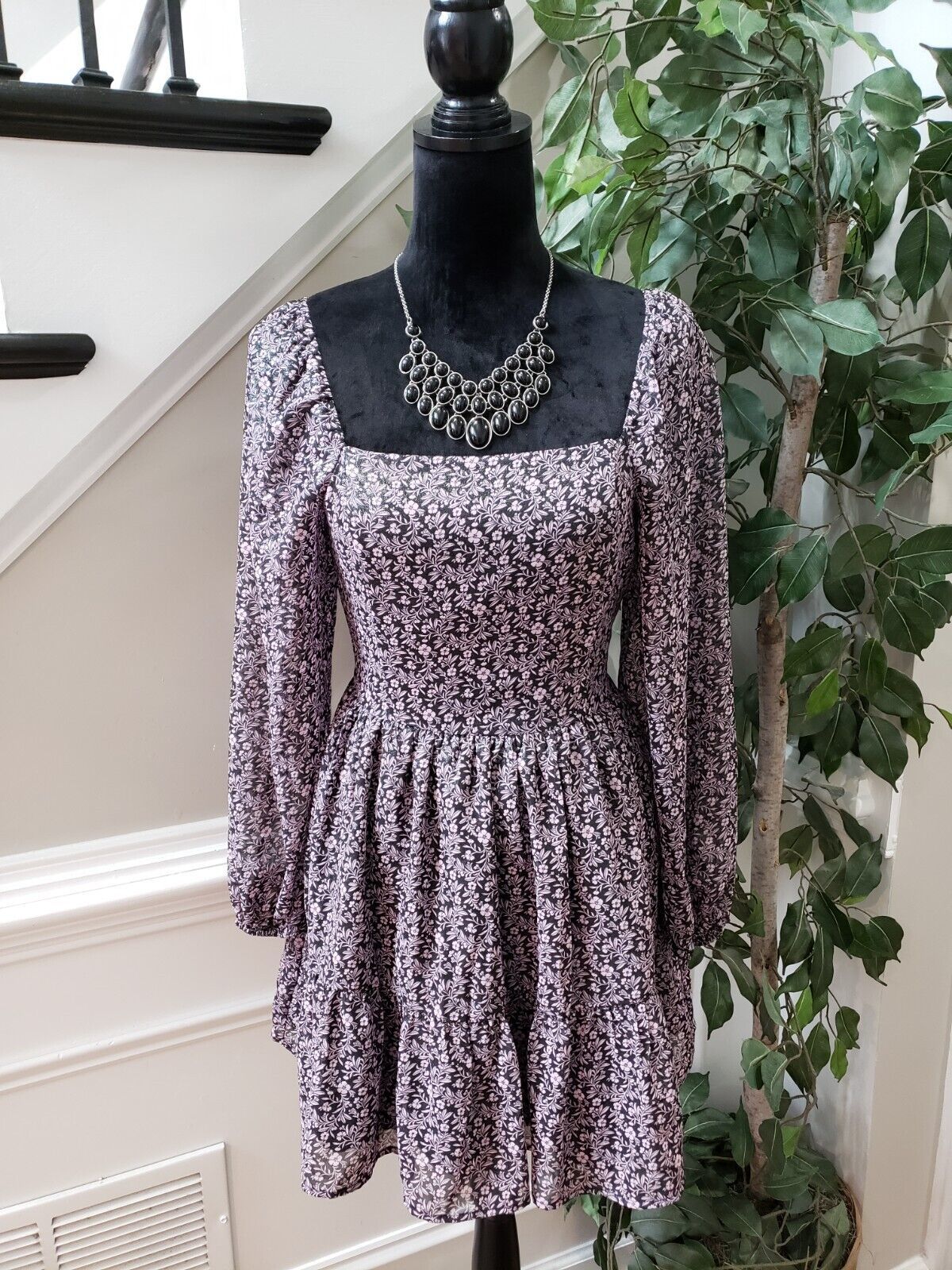 FOREVER 21 Womens Black Floral Lined Long Sleeve Square Neck Knee Length Dress S