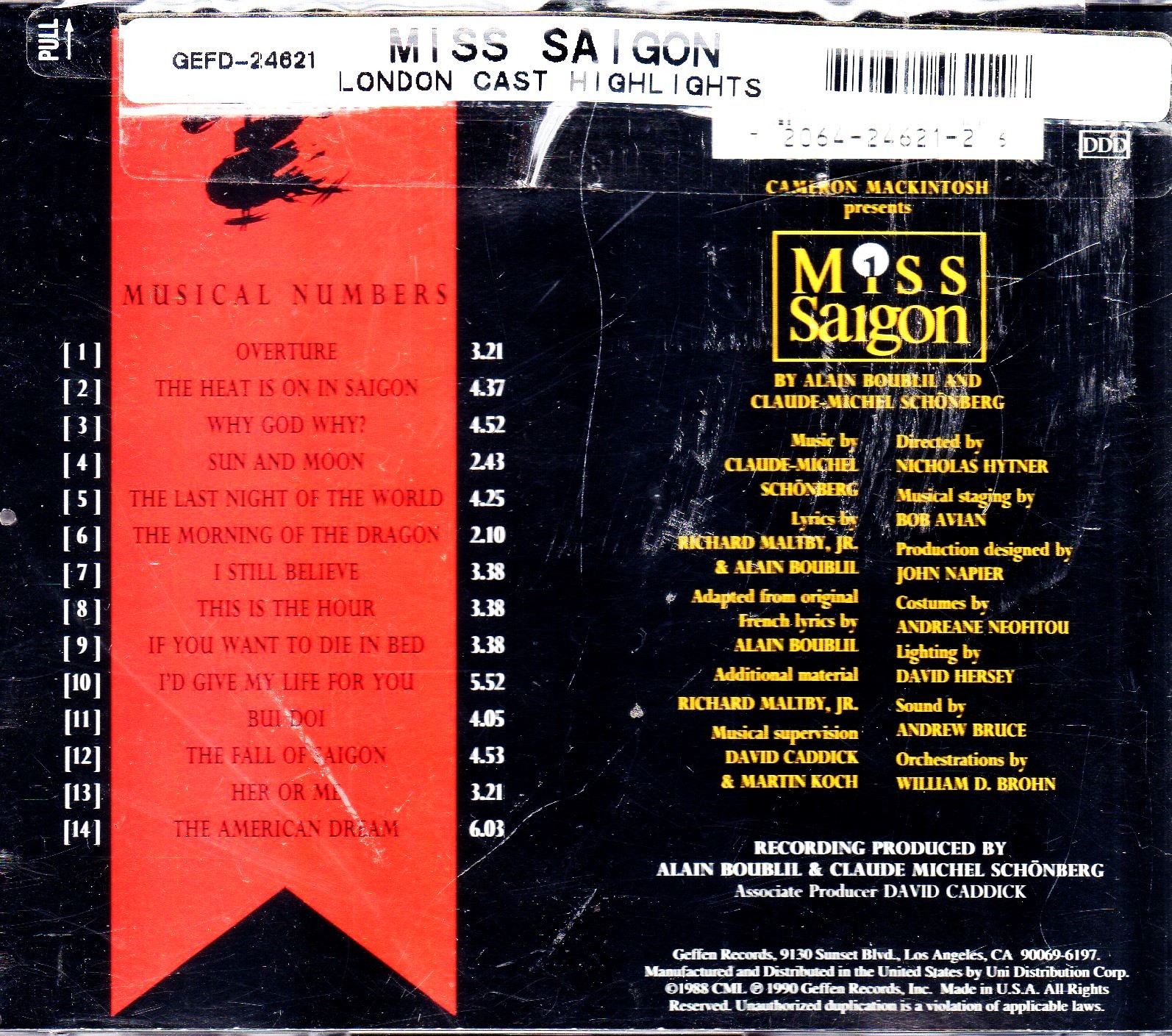 Miss Saigon (1989 London Cast - Highlights) Music CD CLAUDE-MICHEL SCHONBERG