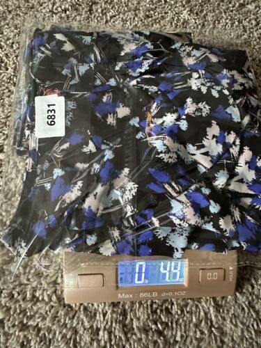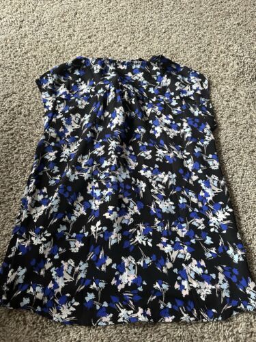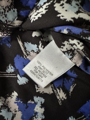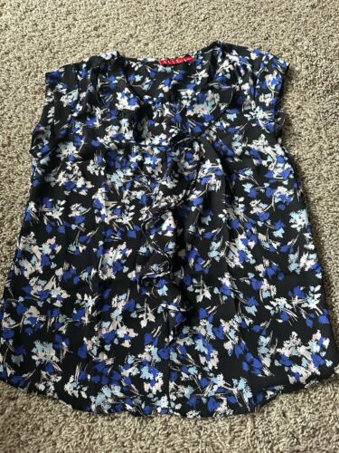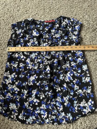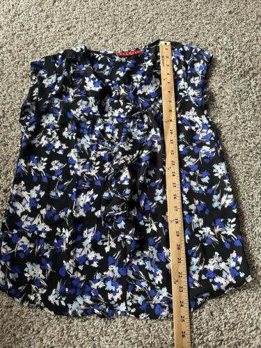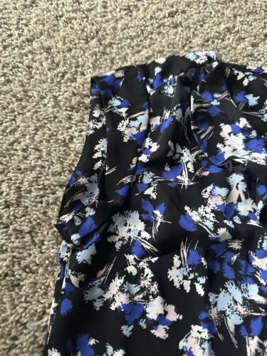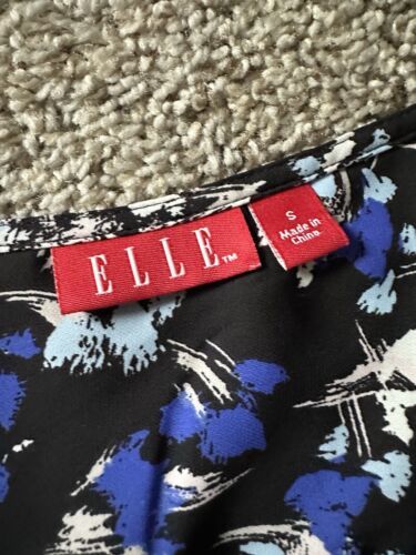 Elle Womens Black Blue Floral Print Ruffle Detall Size Small Casual Career
