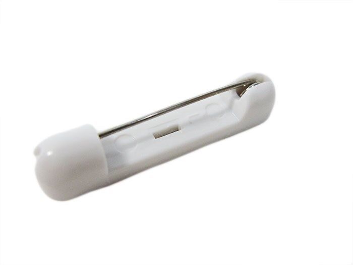 25 BLANK ENGRAVABLE PLASTIC 1 X 3 WHITE FRONT BLACK BACK NAME BADGES (TAGS) WITH 1/8" CORNER ROUNDS AND SAFETY PINS ATTACHED TO THE BACK.