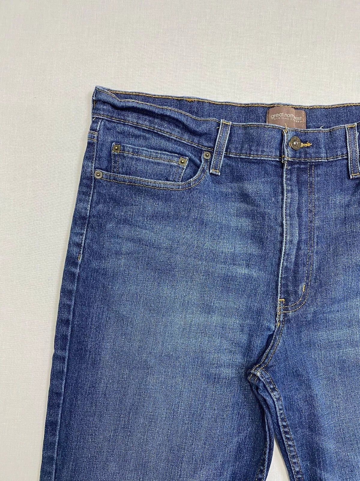 Great Northwest Clothing Co Mens Jeans size 33X 32 denim blue zippered front 3 front pockets 2 back. pockets no stains or holes no fading