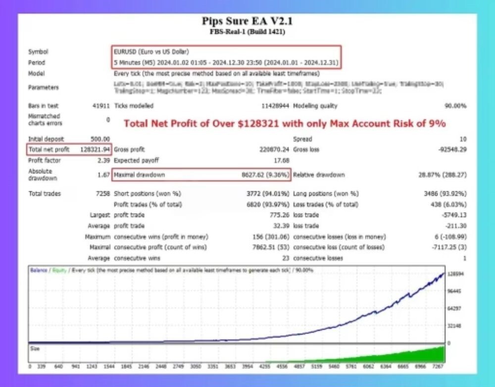 Pips Sure EA is an intelligent automated trading system for MetaTrader 4 that integrates trend detection, price action, and momentum indicators to deliver high-accuracy entries and exits across major forex pairs, maintaining stable profitability with minimal drawdown.