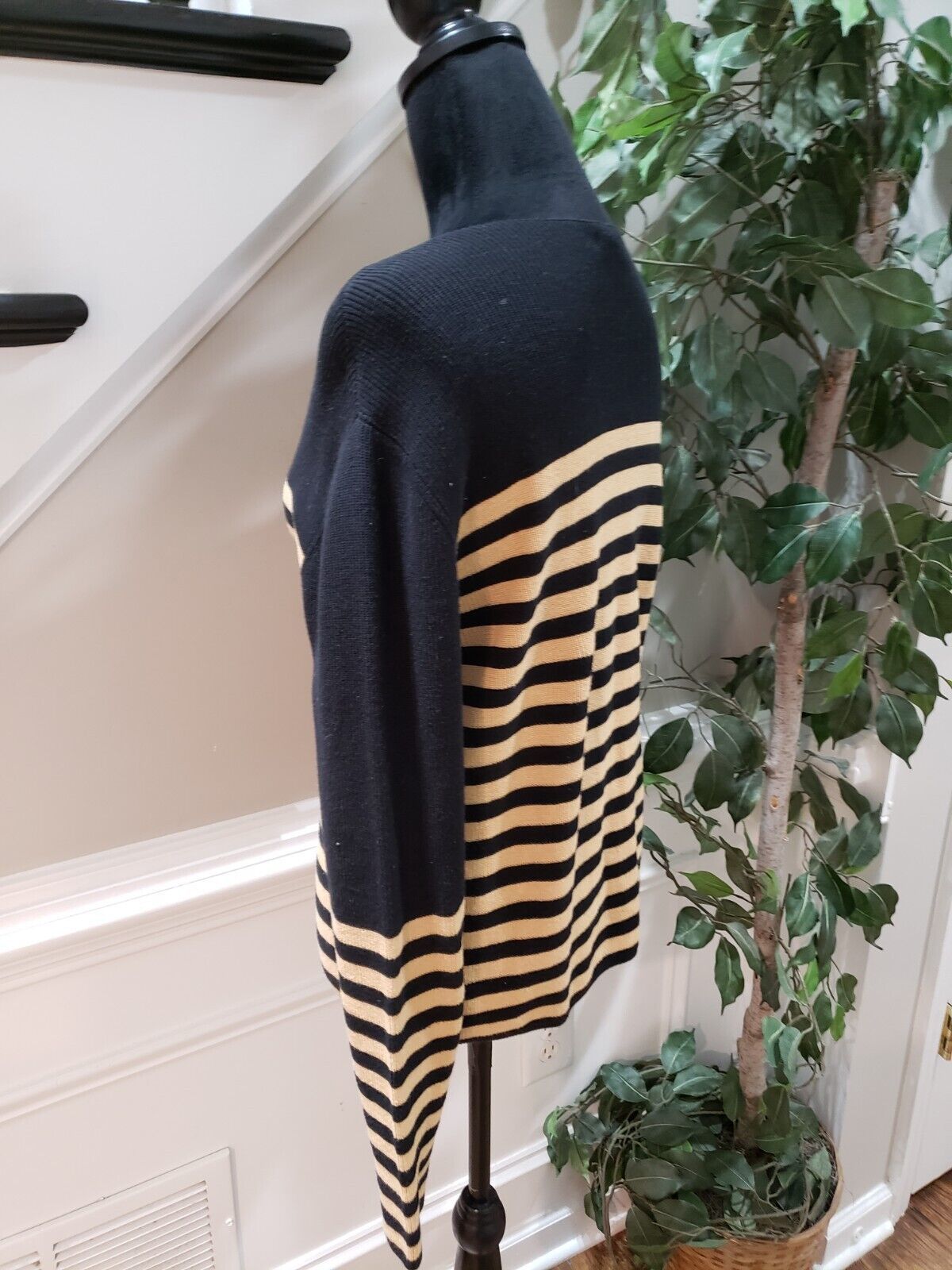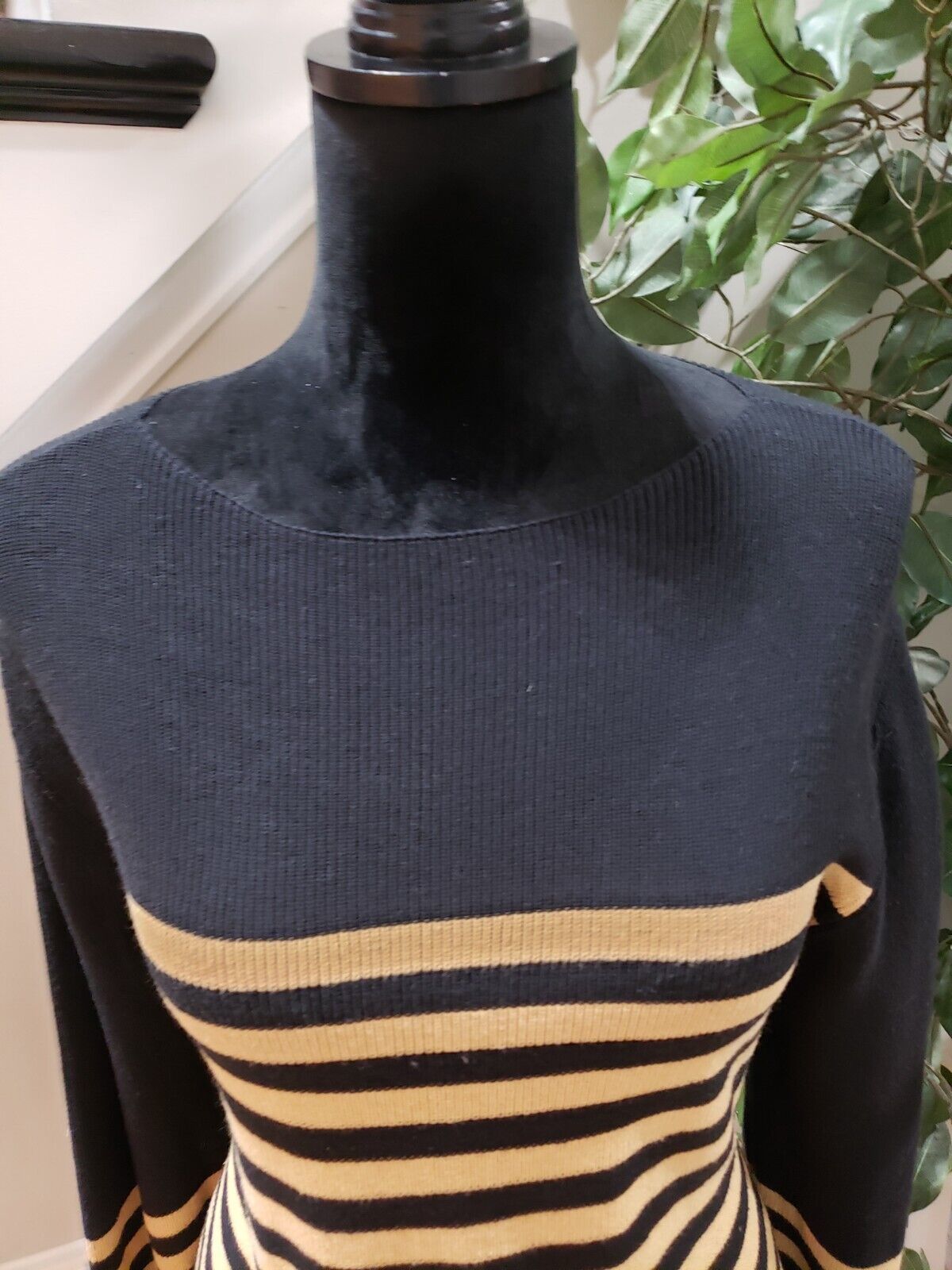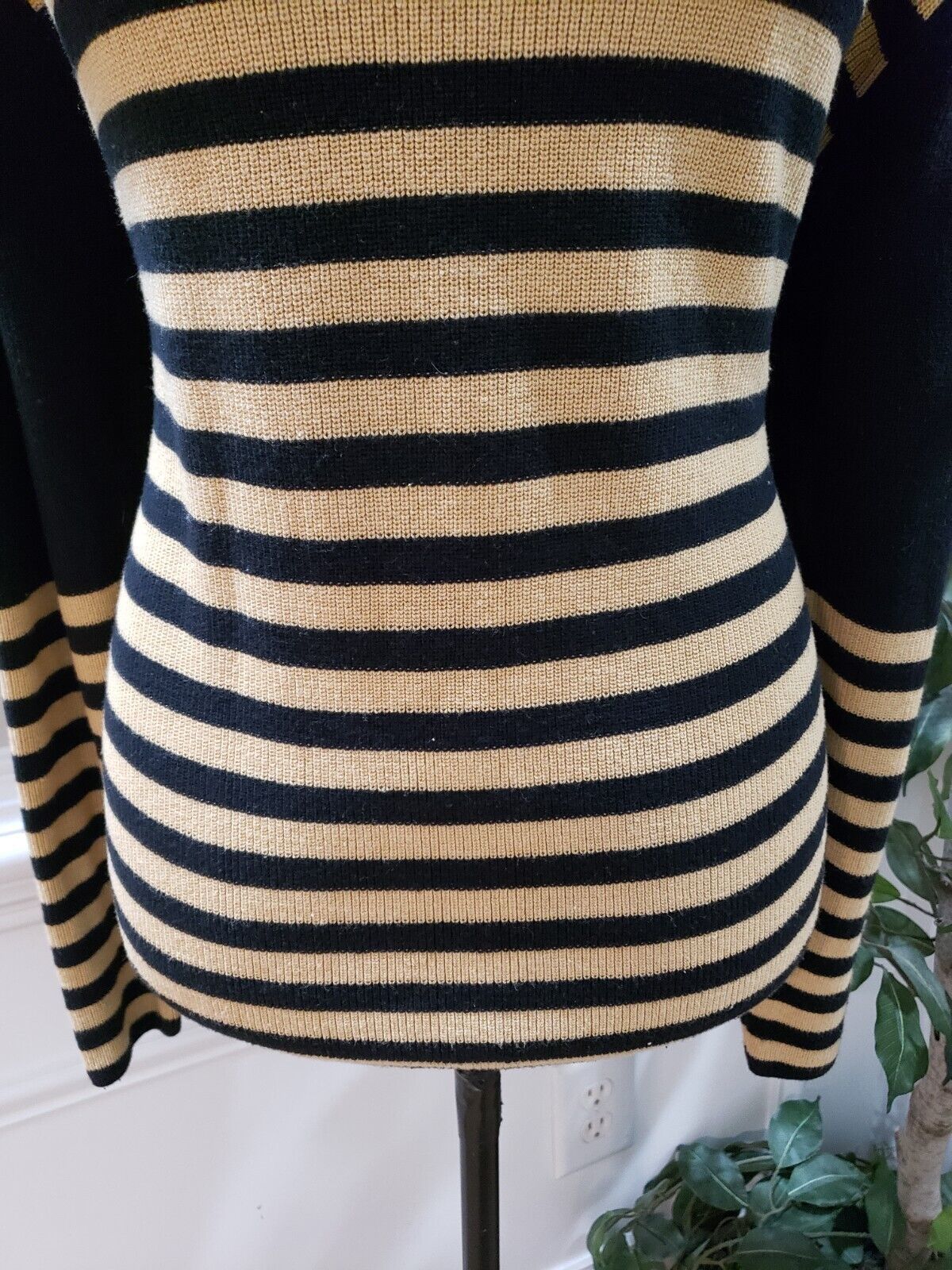 Who What Wear Women's Navy Beige Cotton Boat Neck Long Sleeve Sweater Size Small