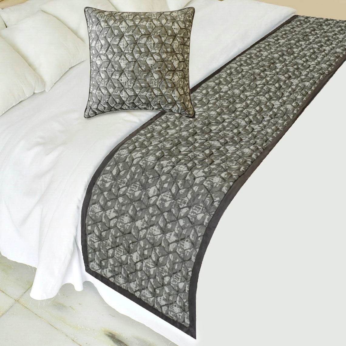 Atria - Jacquard Gray Decorative Bed Runner and Pillow Cover