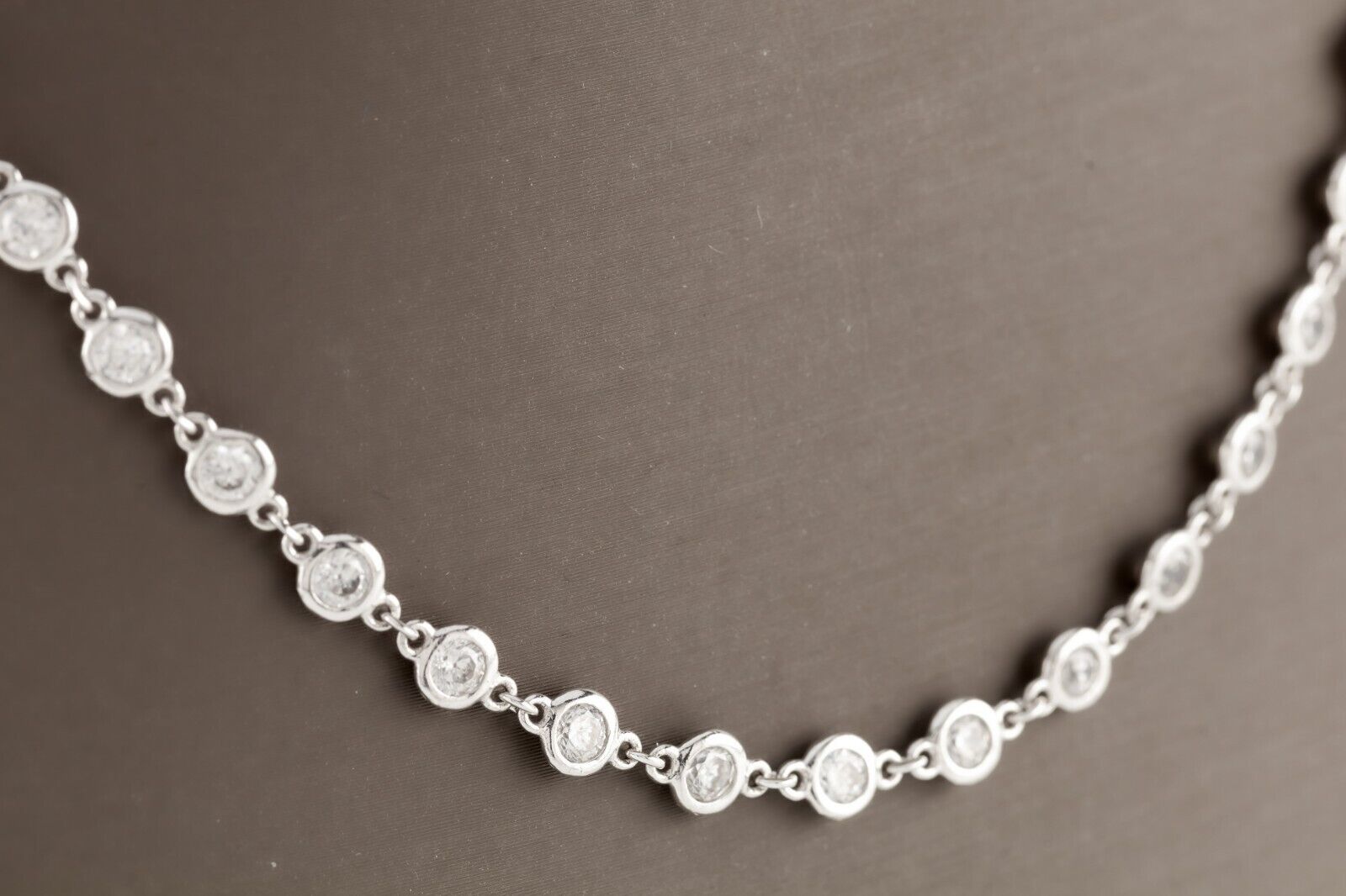 Sterling Silver Bezel Set Cubic Zirconia by the Yard Necklace 42"