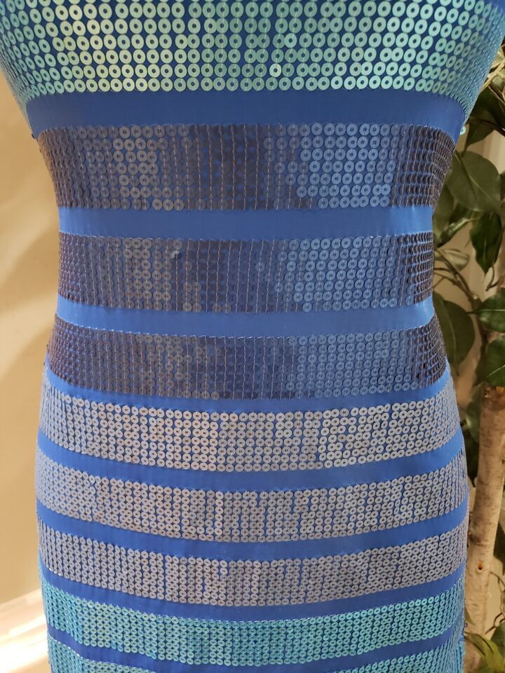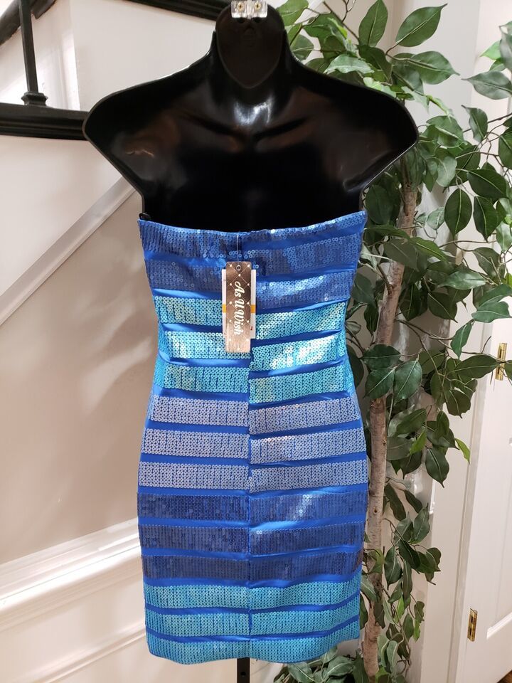 As U Wish Women Blue Sequin Strapless Sleeveless Bodycon Mini Dress Small