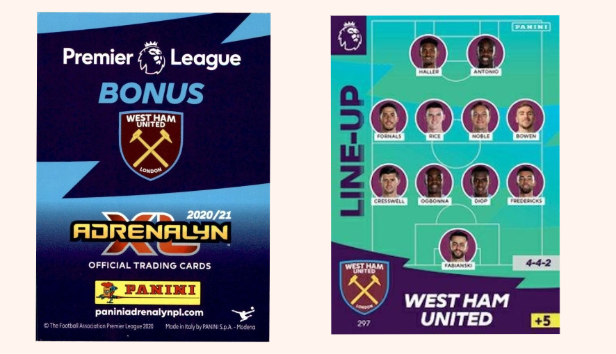 Panini Adrenalyn Premier League 2020-21 West Ham United Line-Up Card
