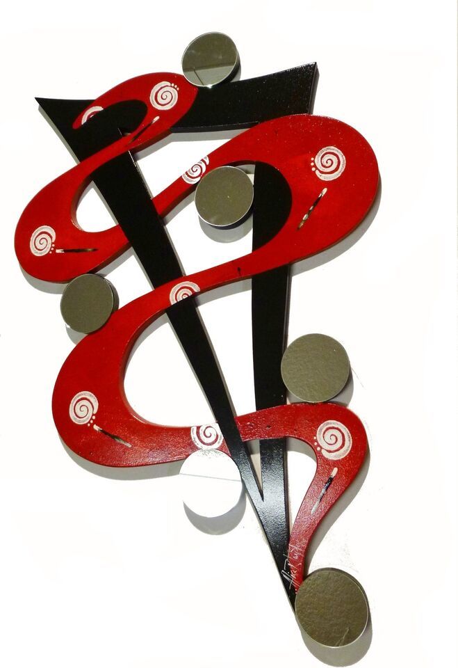 Contemporary Modern Abstract Art Wood and Mirror Wall Sculpture hanging