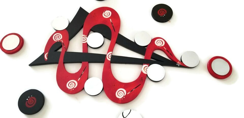 Twisted Crimson Abstract Red, Black Mirror Wall Art 29x17 / BIN 7pc by Alisa