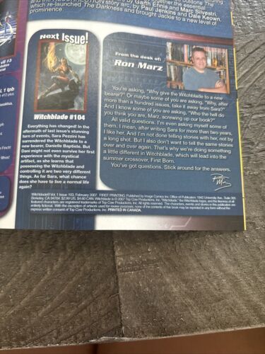 Top Cow Universe Comics Witchblade Vol.1 No.103 February 2007 Comic Book EG