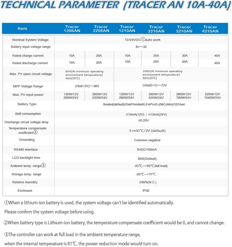 Compatible with LiFePO4 Li(NiCoMn)O2 Batteries, with built in preset lithium battery type, it's not require setting charging parameters for lithium batteries.