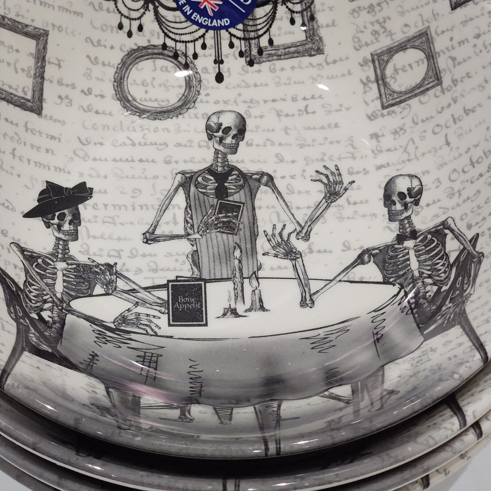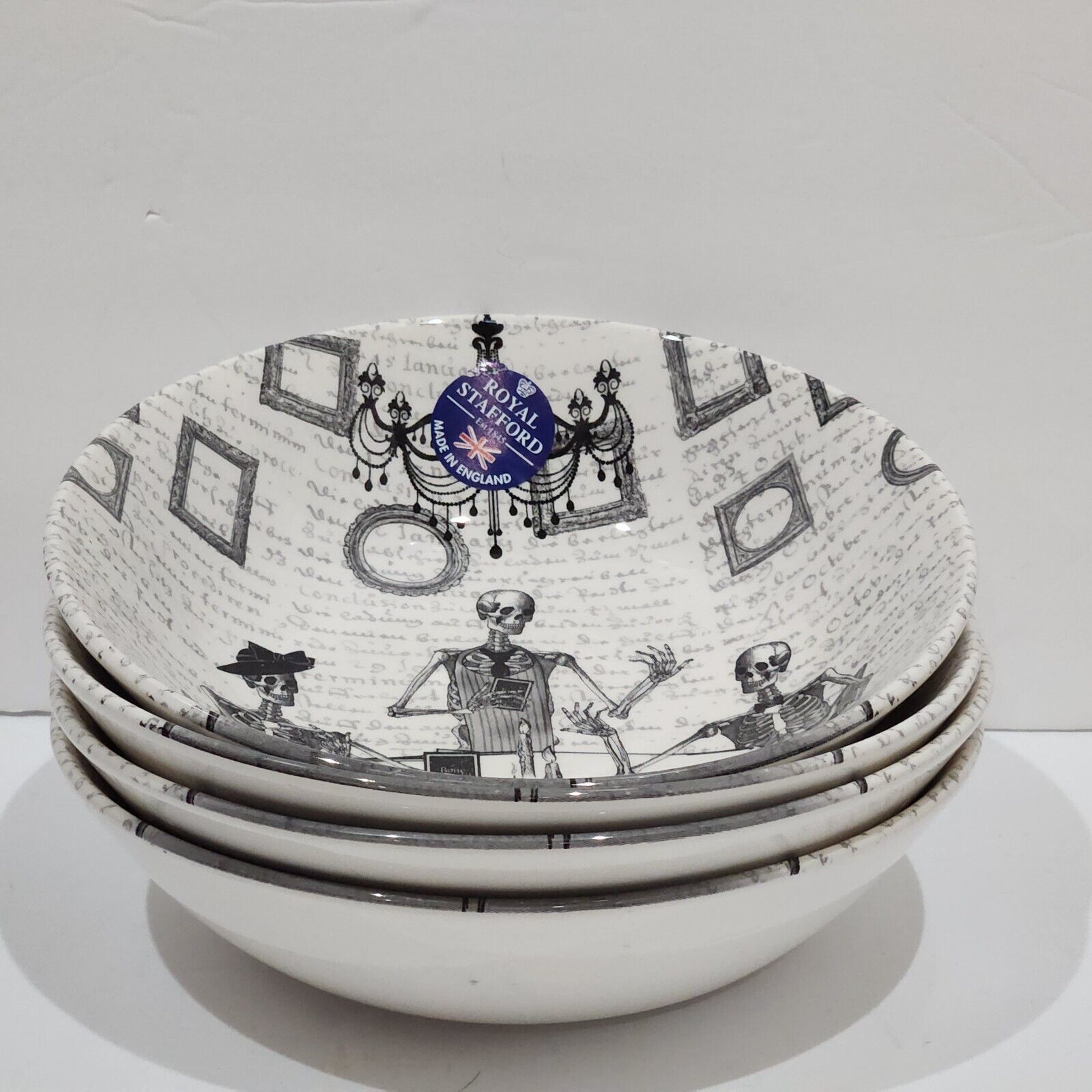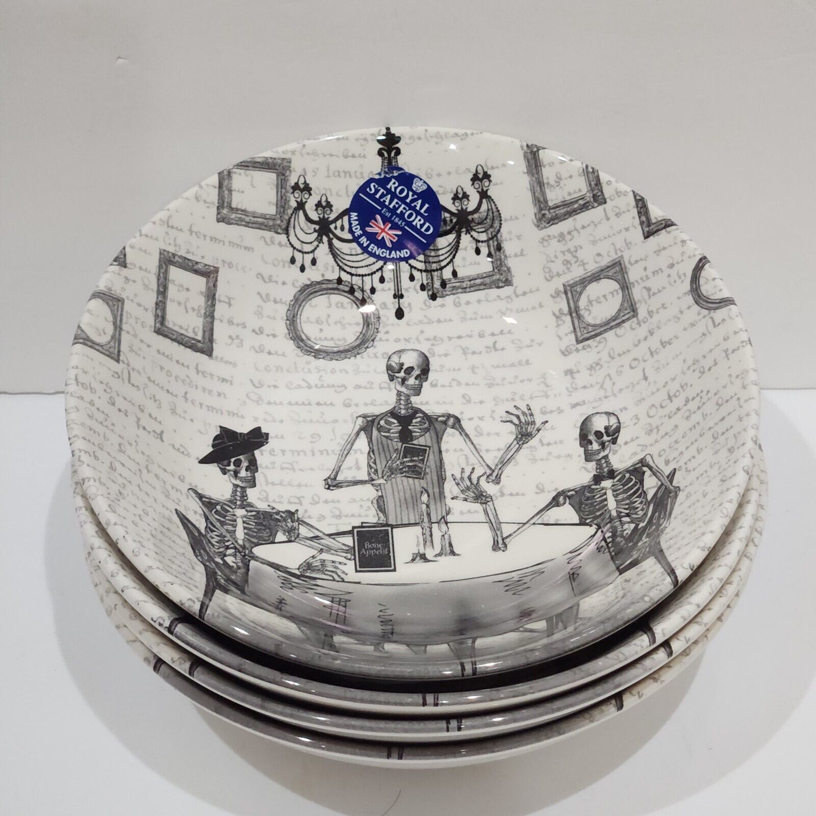 x4 Royal Stafford Halloween Skeleton Bone Appetite Soup Bowls Dining Cafe
