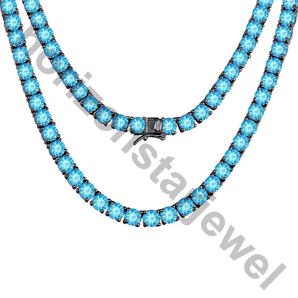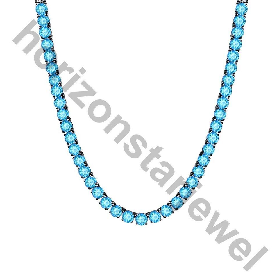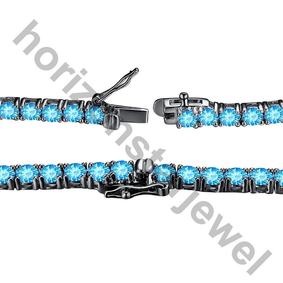 15.24 Ctw Lab Created Blue Topaz 14K Black Gold Plated Tennis 3 MM Necklace 18"