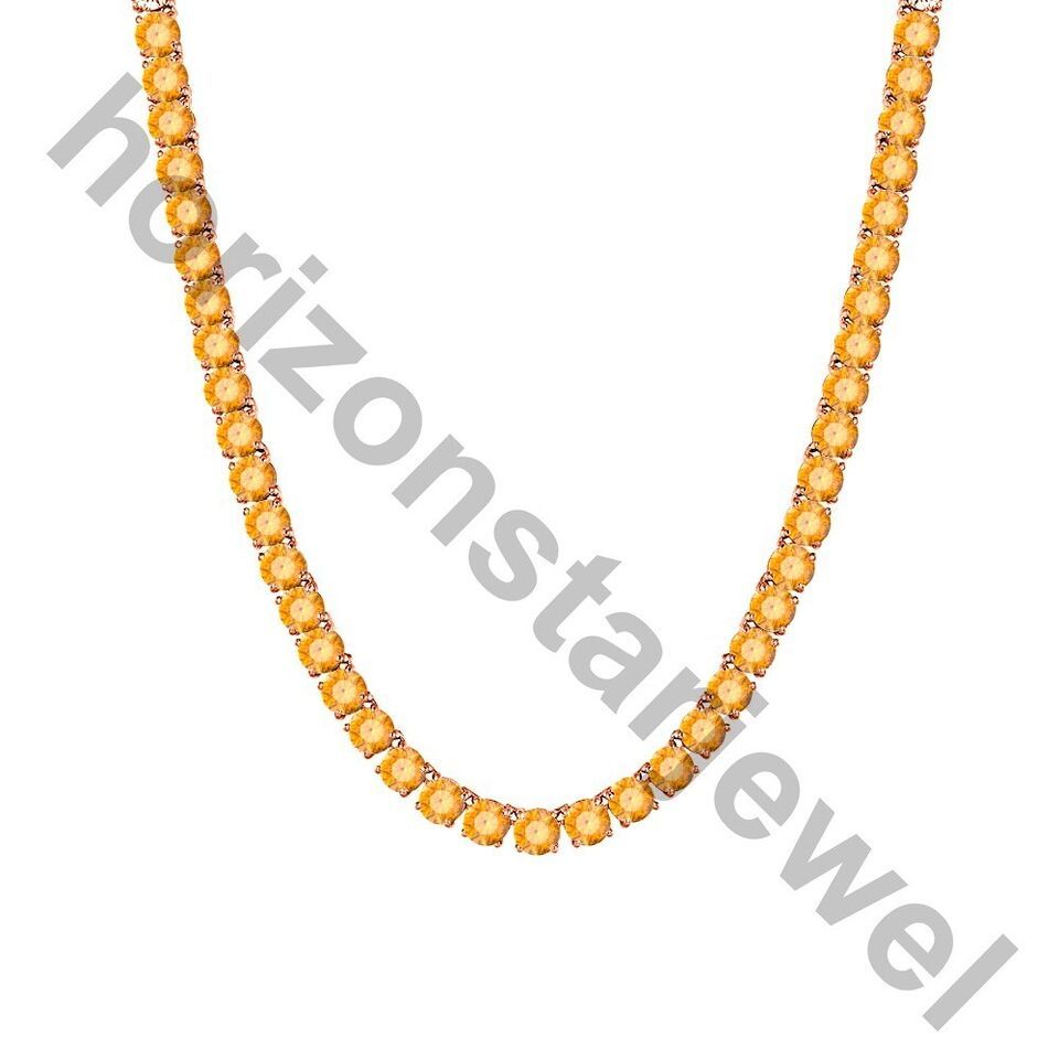 15.24 Ct Created Round Cut Citrine 14K Rose Gold Plated Tennis 3 MM Necklace 18"
