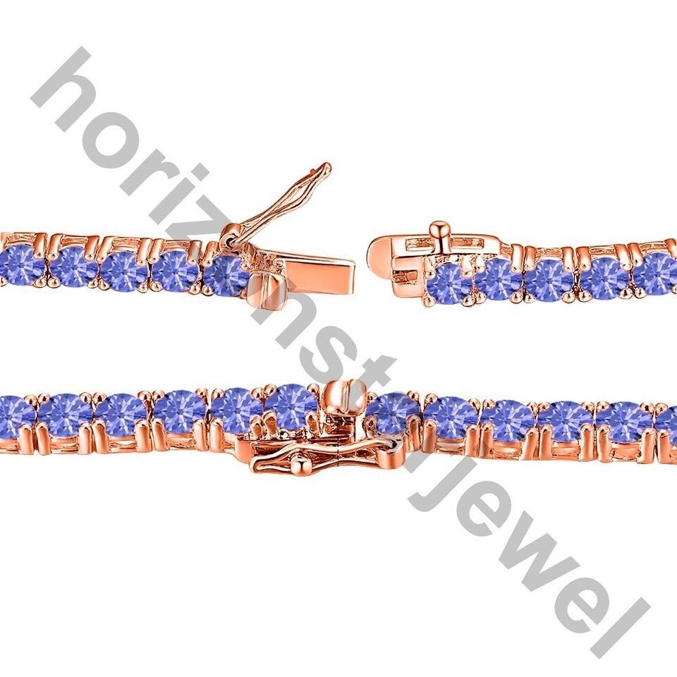 15.24 Ctw Lab Created Tanzanite 14K Rose Gold Plated Tennis 3 MM Necklace 18"