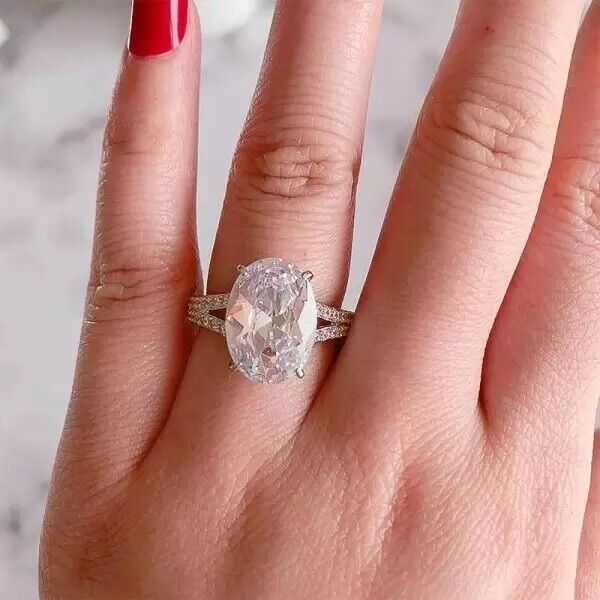 4.5 ctw Oval Cut Real Moissanite 14K White Gold Over Split Shank Engagement Ring