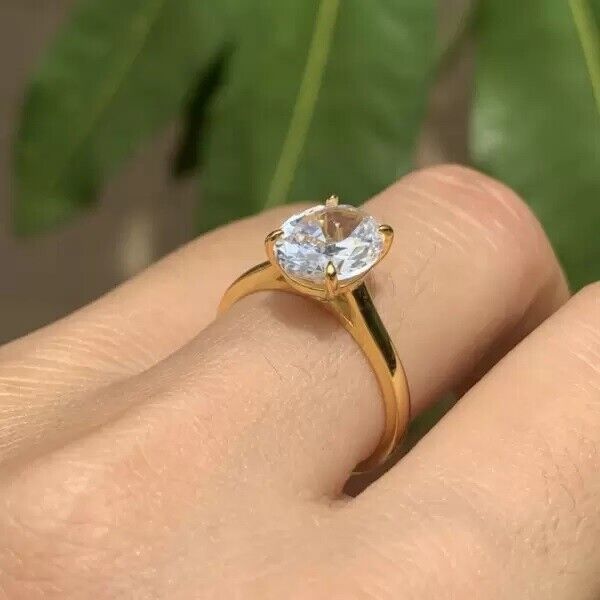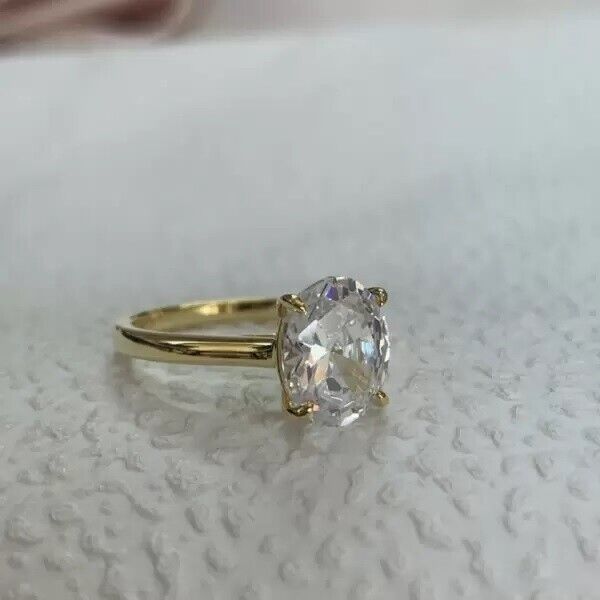 14K Yellow Gold Over 4.50 ctw Oval Cut Real Moissanite Solitaire Engagement Ring