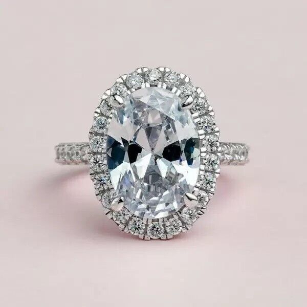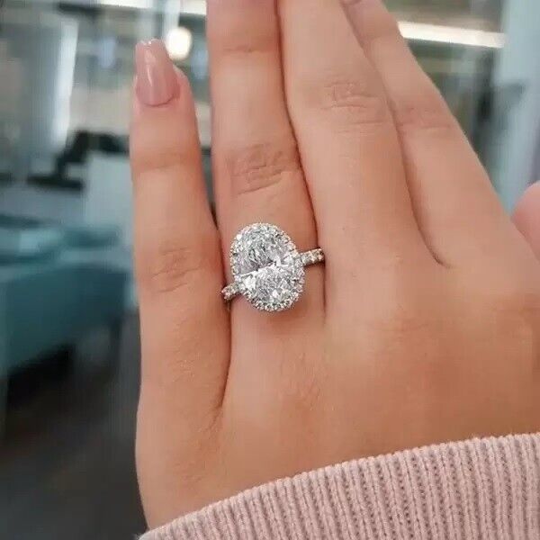 5.68 ctw Oval Cut Brilliant Moissanite 14K White Gold Over Halo Engagement Ring