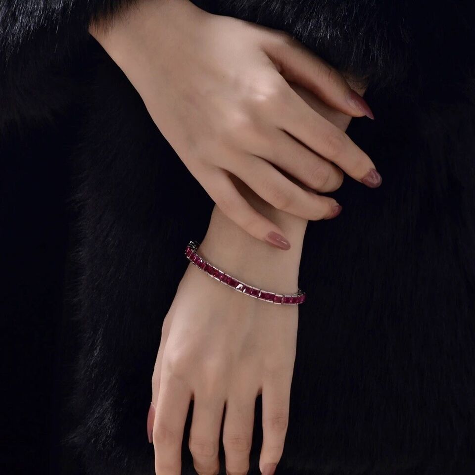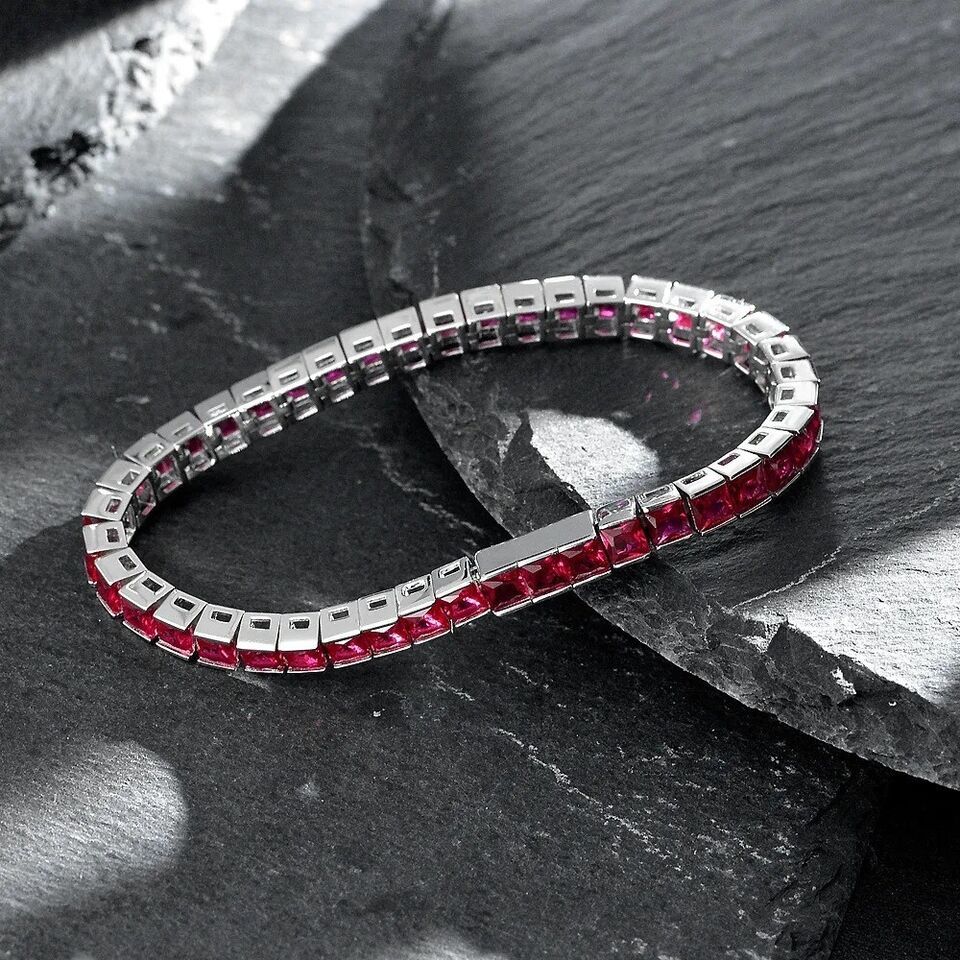 17.2 Ct Princess Lab Created Ruby 14K White Gold Plated Tennis 4 MM Bracelets 7"