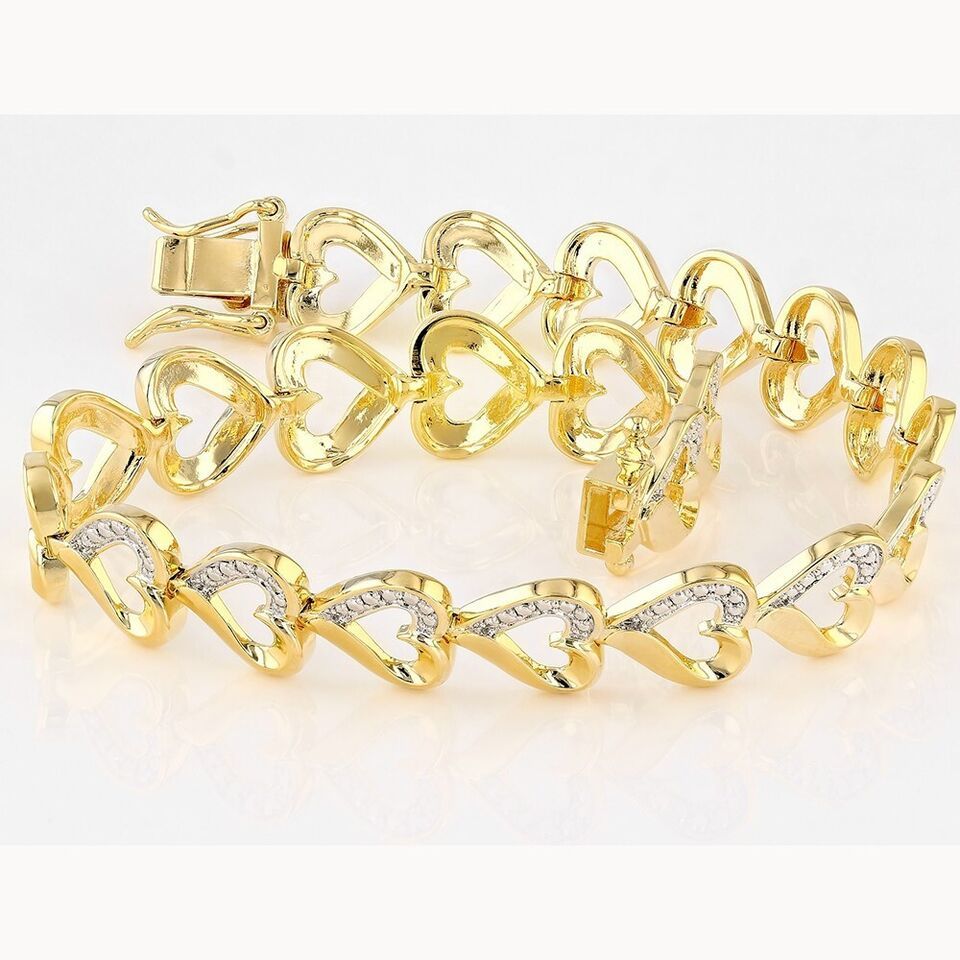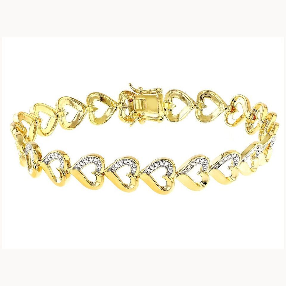 0.50 Ct D/FL Real Moissanite 14K Yellow Gold Plated Heart Station Bracelets 7.5"