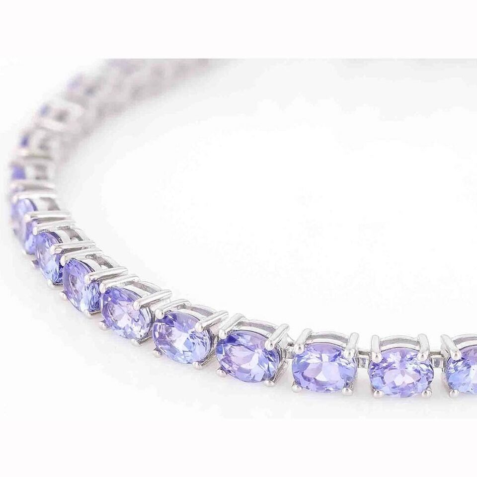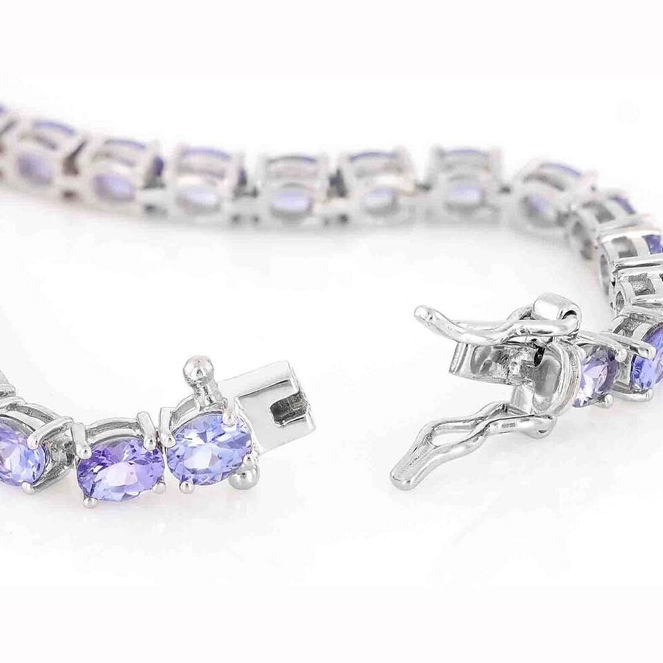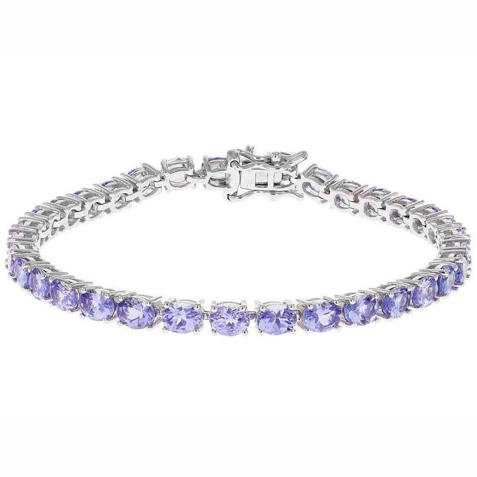 10.71 Ct Oval Cut Lab Created Tanzanite 14K White Gold Plated Tennis Bracelet 8"