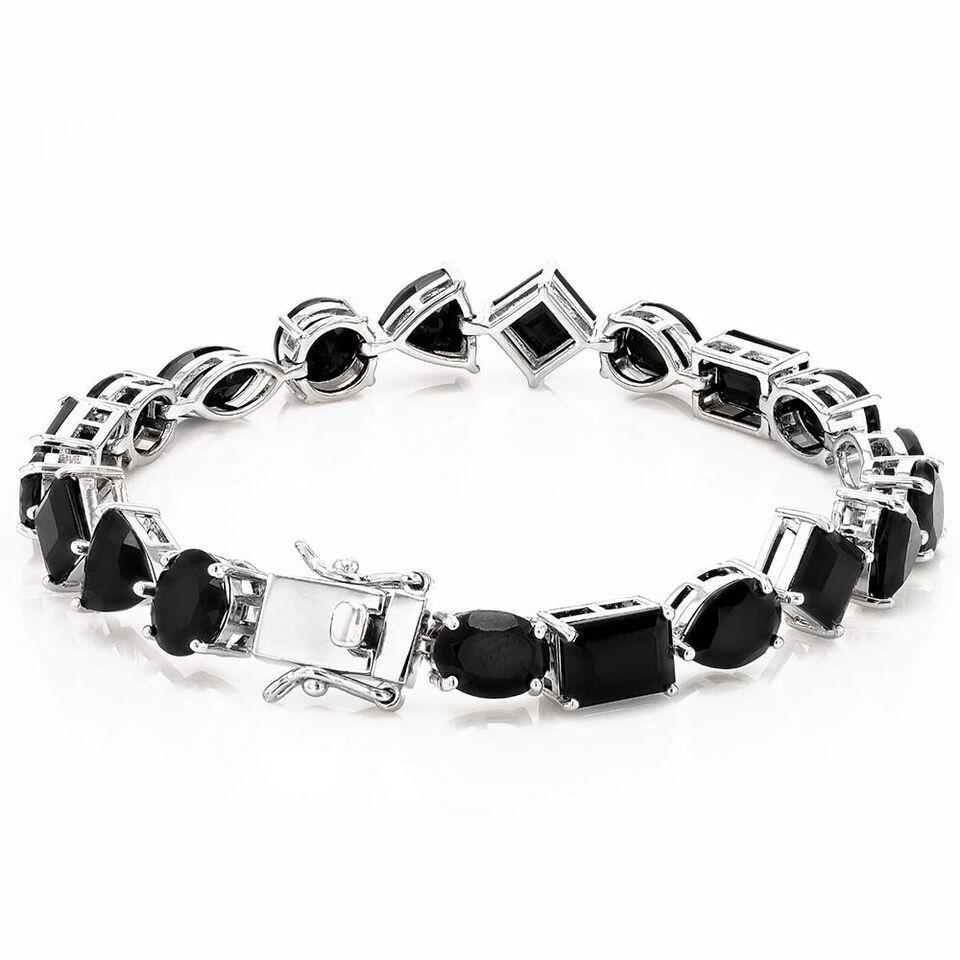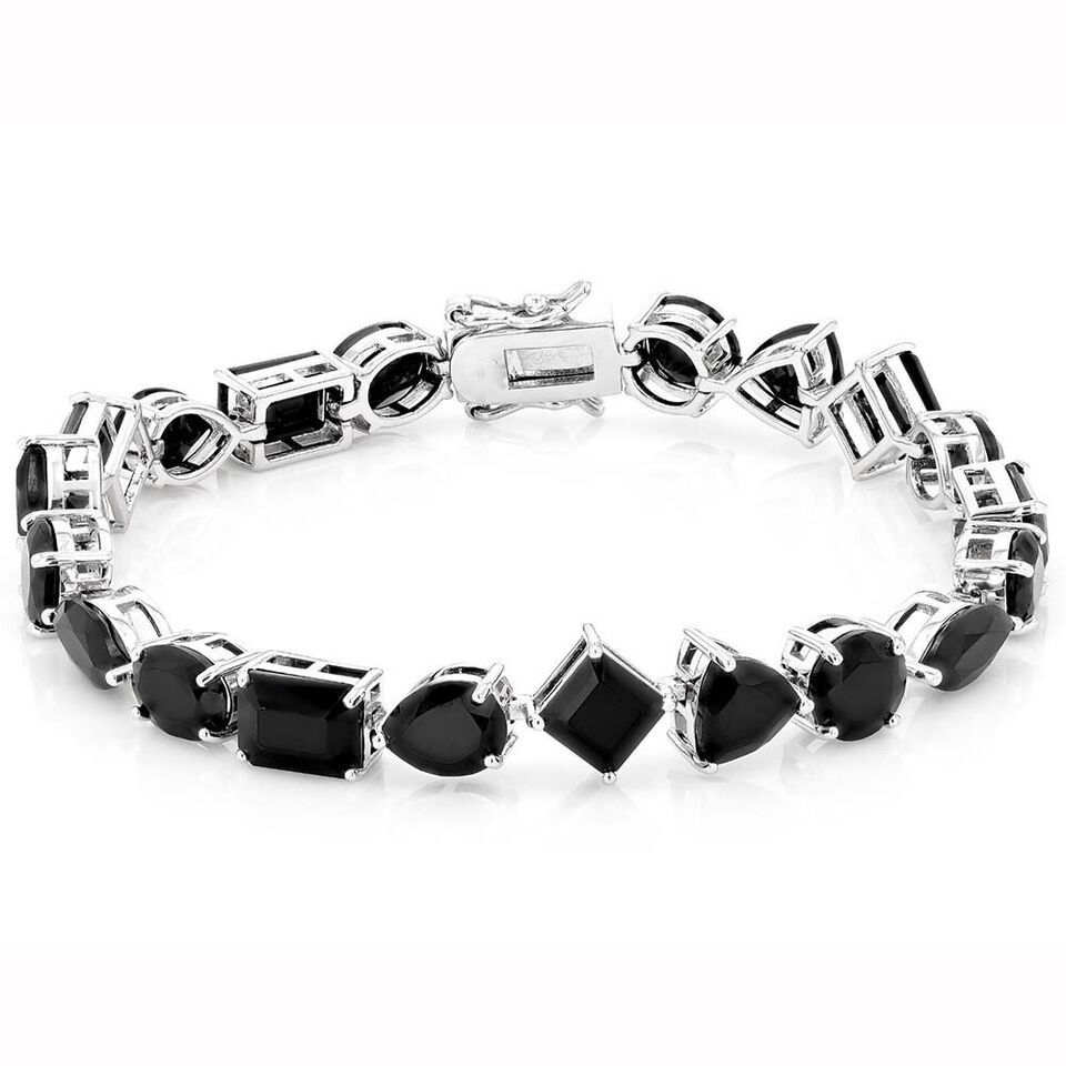 27.65 Ctw Lab Created Black Spinel 14K White Gold Plated Tennis Bracelet 8"