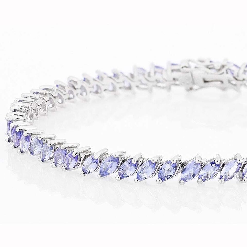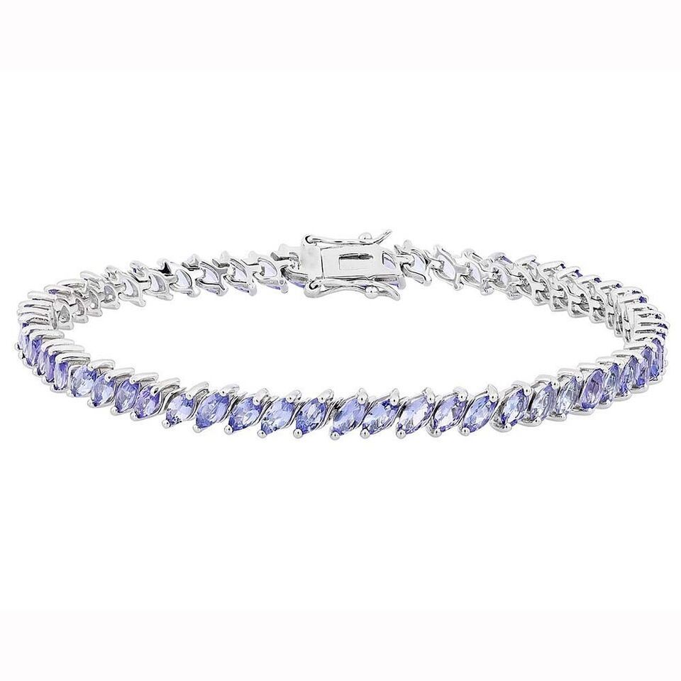 6.65 Ctw Marquise Lab Created Tanzanite 14K White Gold Plated Tennis Bracelet 8"