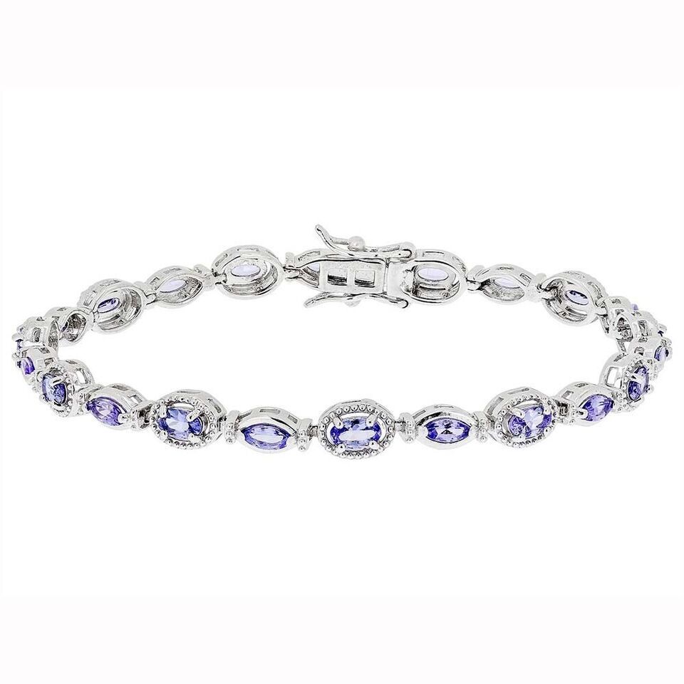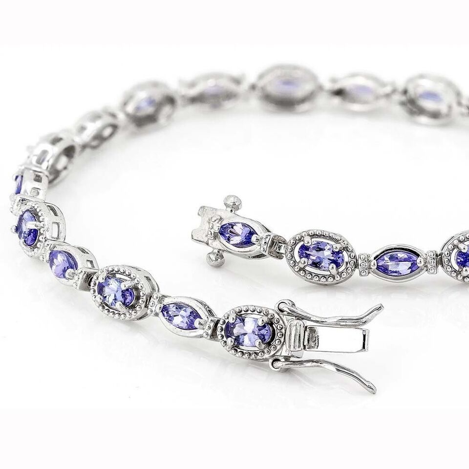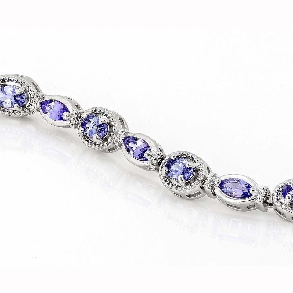3.50 Ctw Created Tanzanite & Diamond 14K White Gold Plated Tennis Bracelet 8"