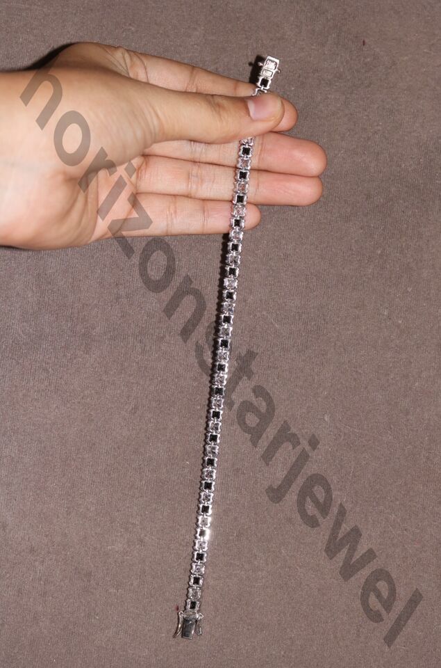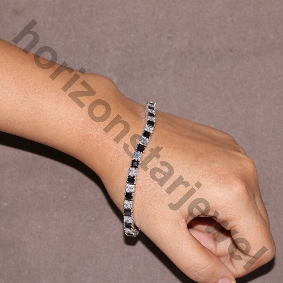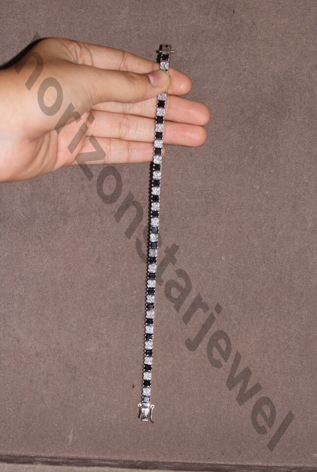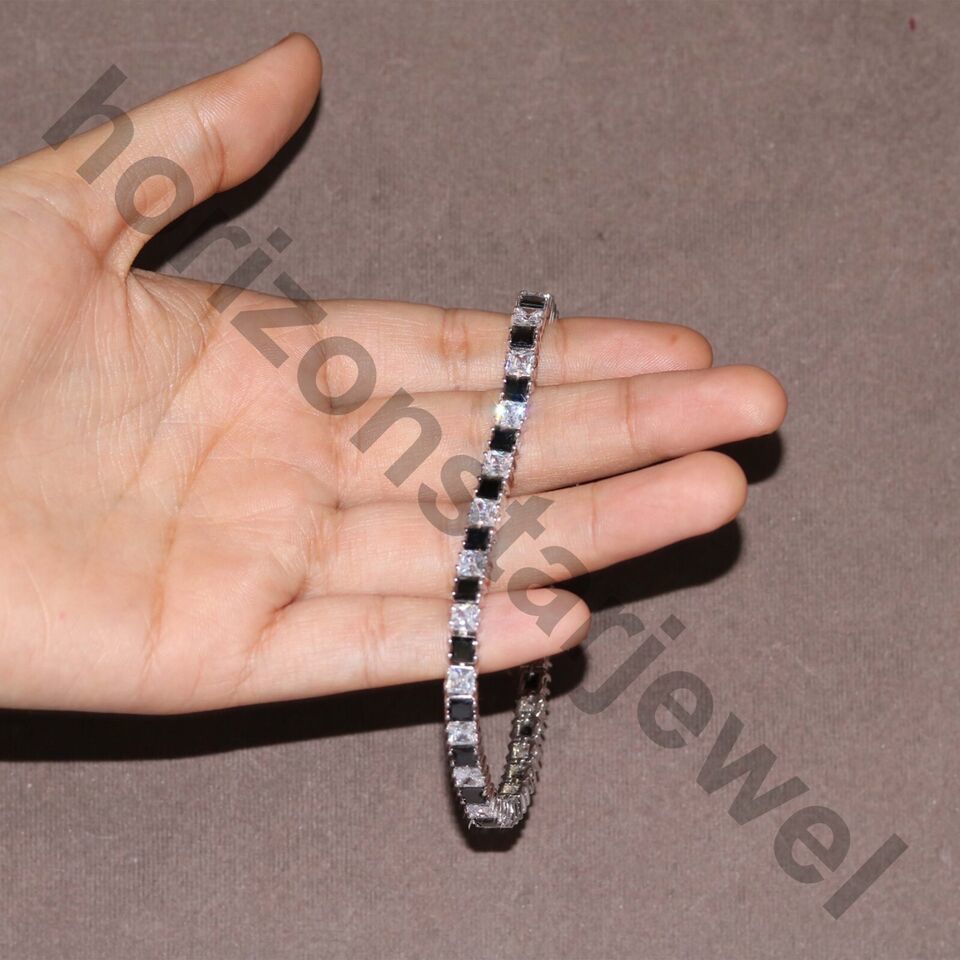 27ct Lab Created Black & Diamond 14K White Gold Plated 4 MM Tennis Bracelet 8.5"