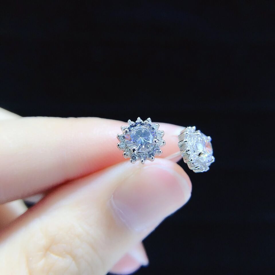 2.80 Ctw D/FL Brilliant Moissanite 14K White Gold Plated Flower Stud Earrings