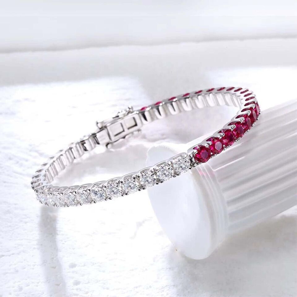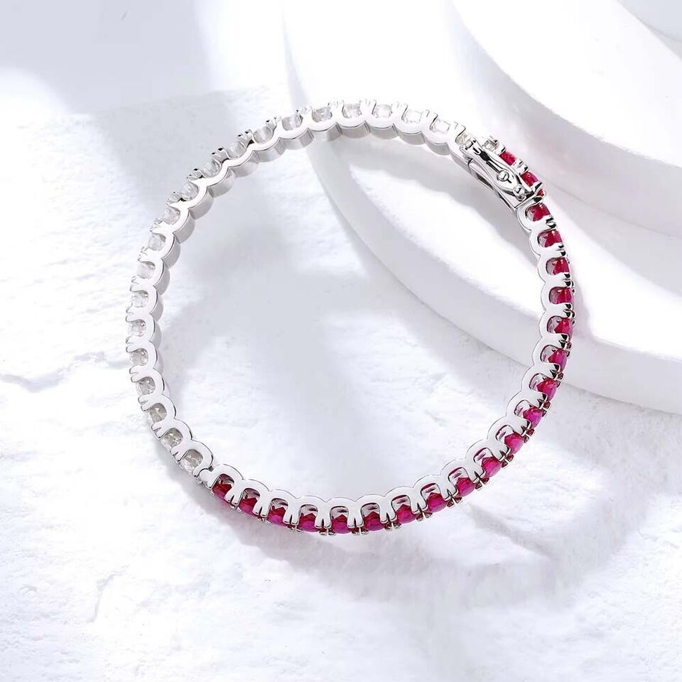 12.6Ct Lab Created Ruby & Diamond 14K White Gold Plated 4 MM Bangle Bracelets 8"