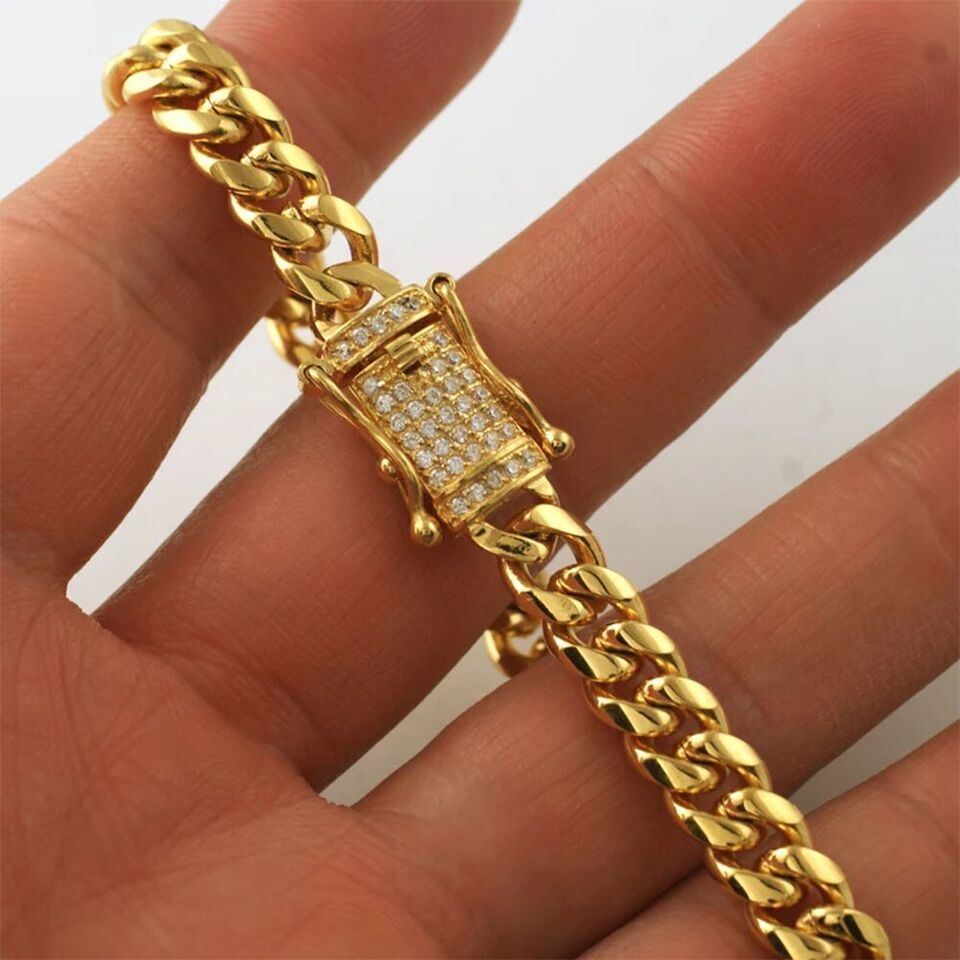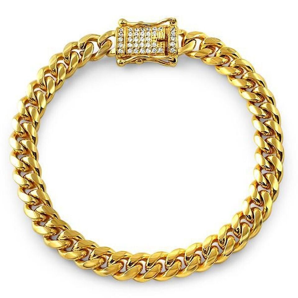 0.50 ctw D/FL Moissanite S925 18K Yellow Gold Plated 8 mm Cuban Bracelet 7.5"