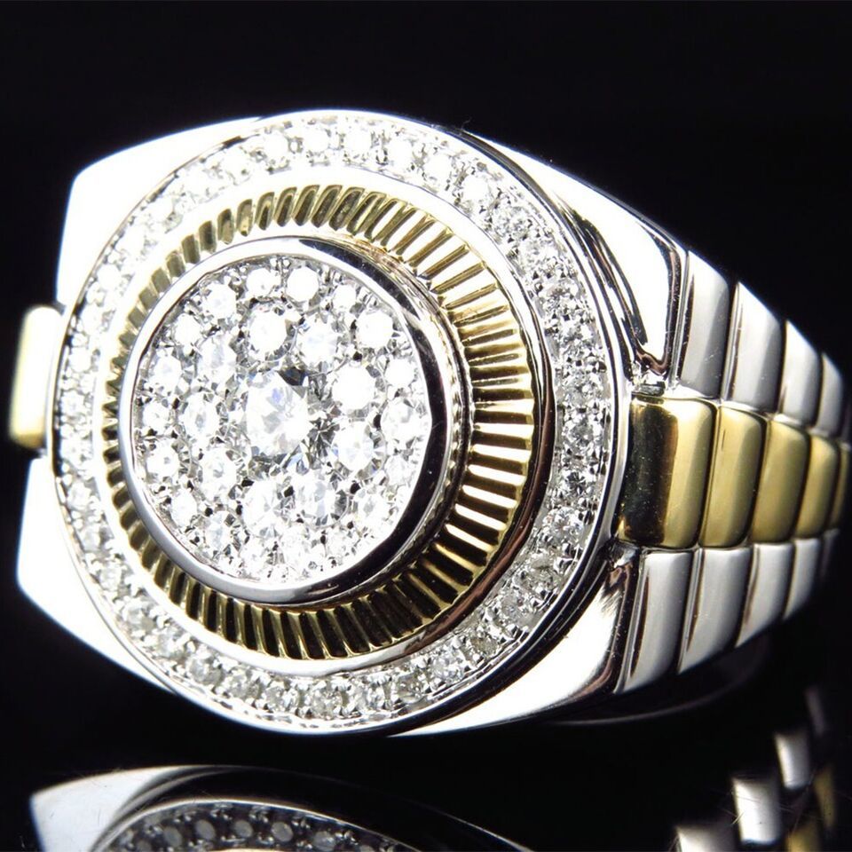 1 ctw Brilliant Moissanite 14K Two Tone Gold Plated Cluster Pinky Men's Ring